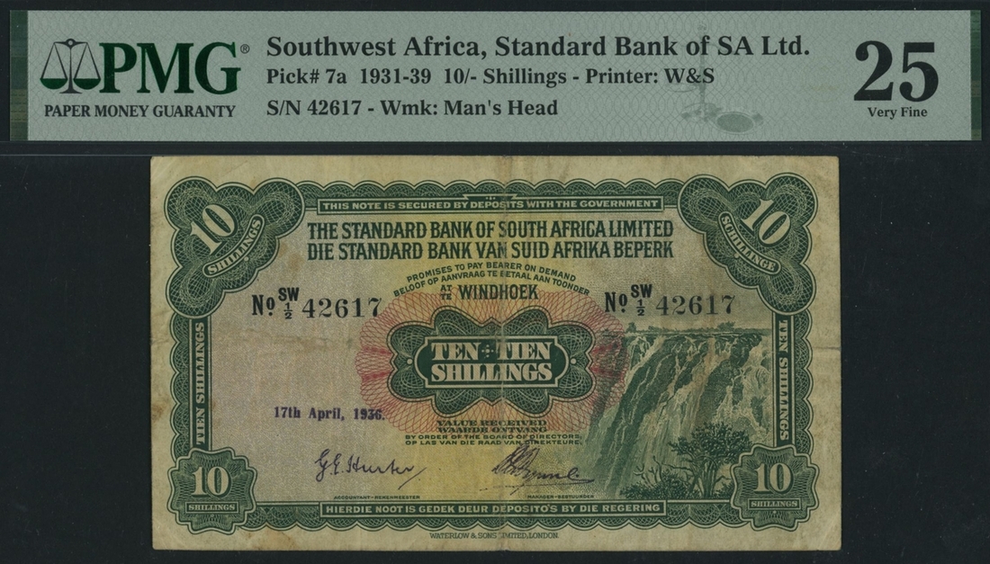 (x) Standard Bank of South Africa Limited, 10 Shillings, Windhoek, 17th April 1936, serial number 42617, (Pick 7a), in PMG holder 25 Very Fine