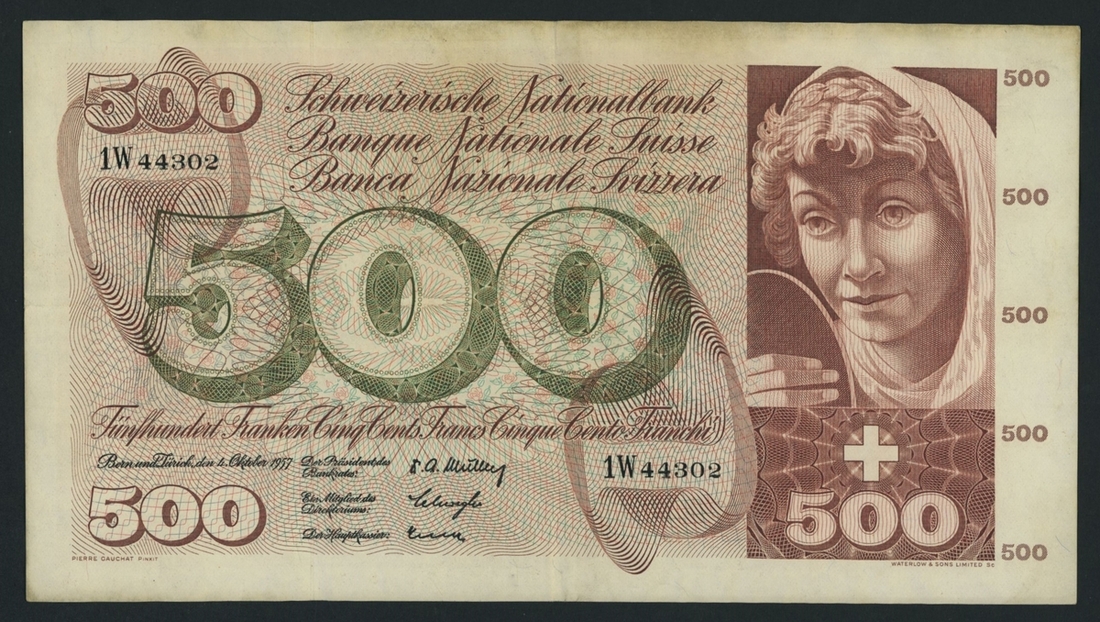 500 Franken, 4th October 1957, serial number 1W 44302,