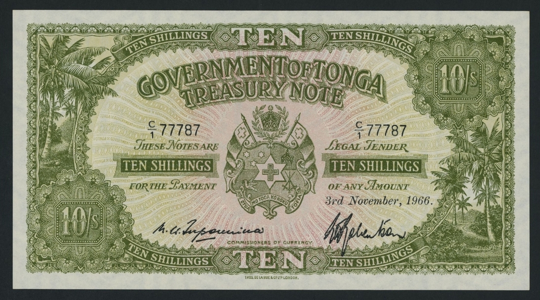 Government of Tonga, 10 /-, 3rd November 1966, C/1 77787, (Pick 10e), uncirculated