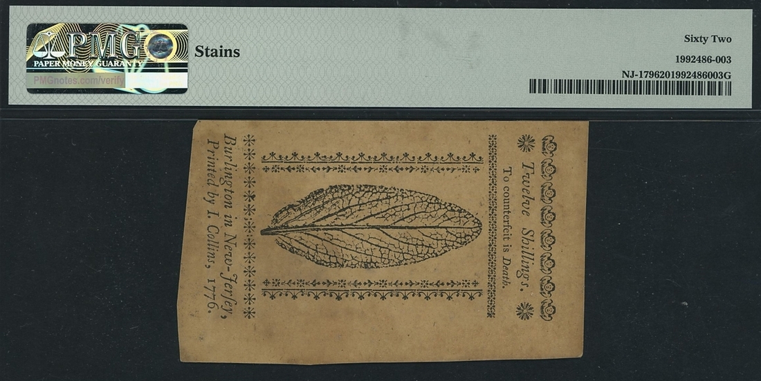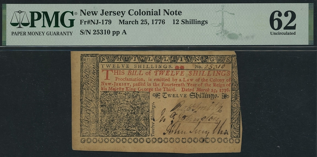(x) New Jersey, United States Colonial Issue, 12-/, 25th March 1776, serial number 25310, handwritten serial number, leaf on reverse with warning "To counterfeit is Death",
