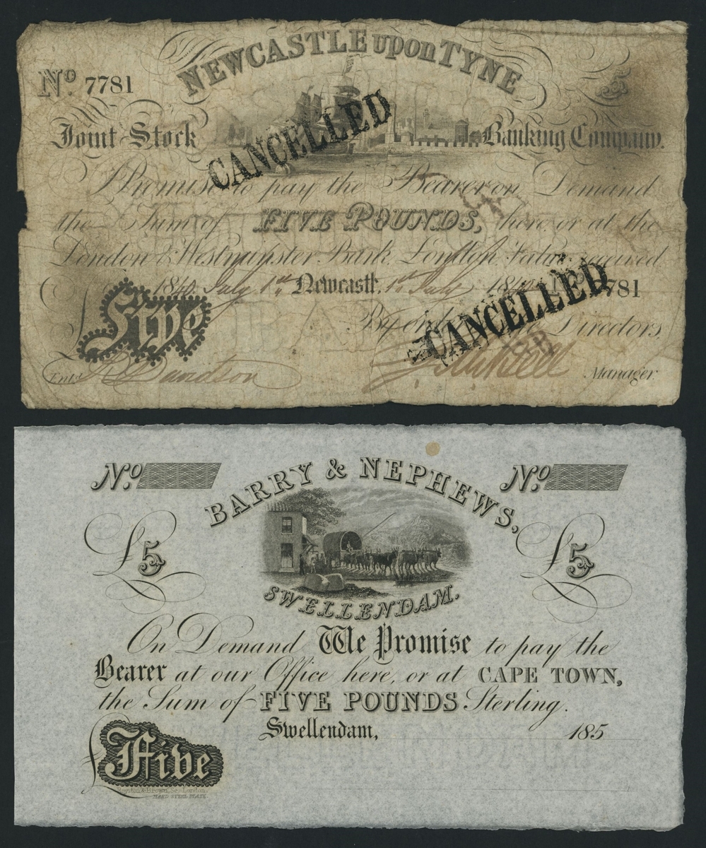 South Africa, Swellendam, Barry & Nephews, £5, ND (1850),