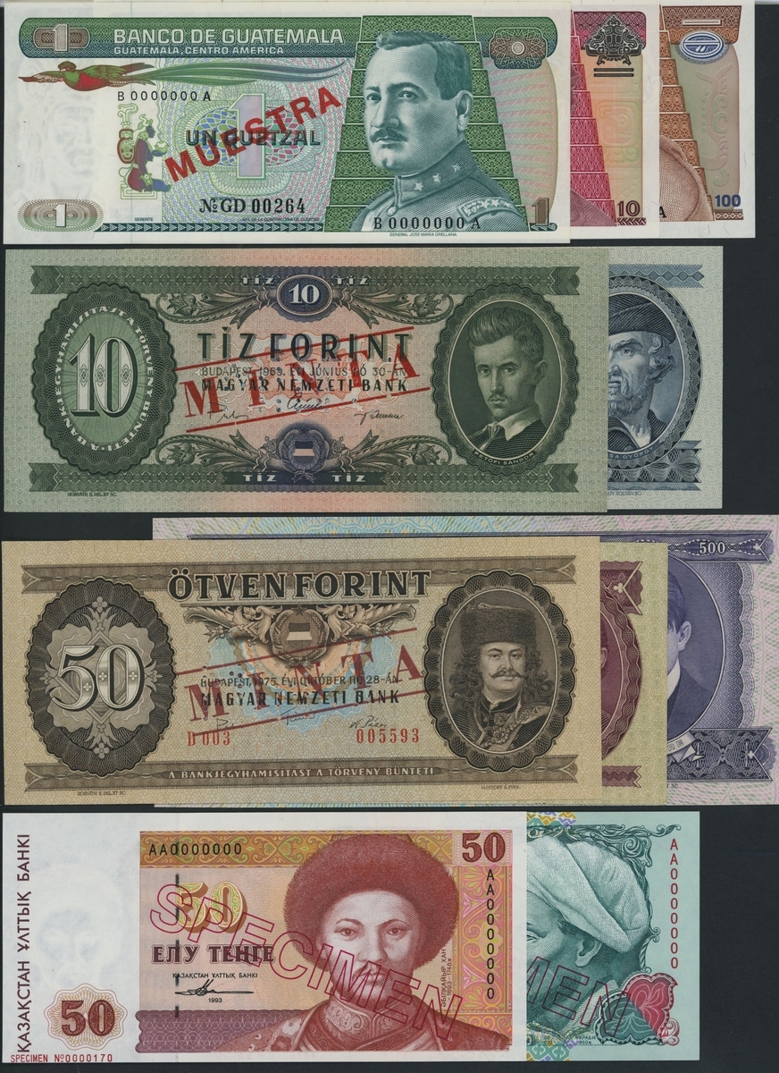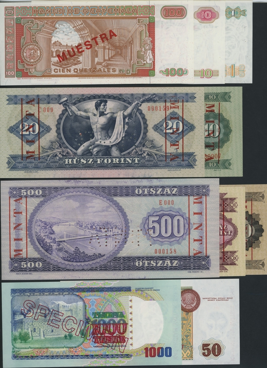 (x) World Specimen Notes, [10 notes] Guatemala, Hungary, Kazakhstan, Guatemala (3) (Pick 66s, 68s, 71s),