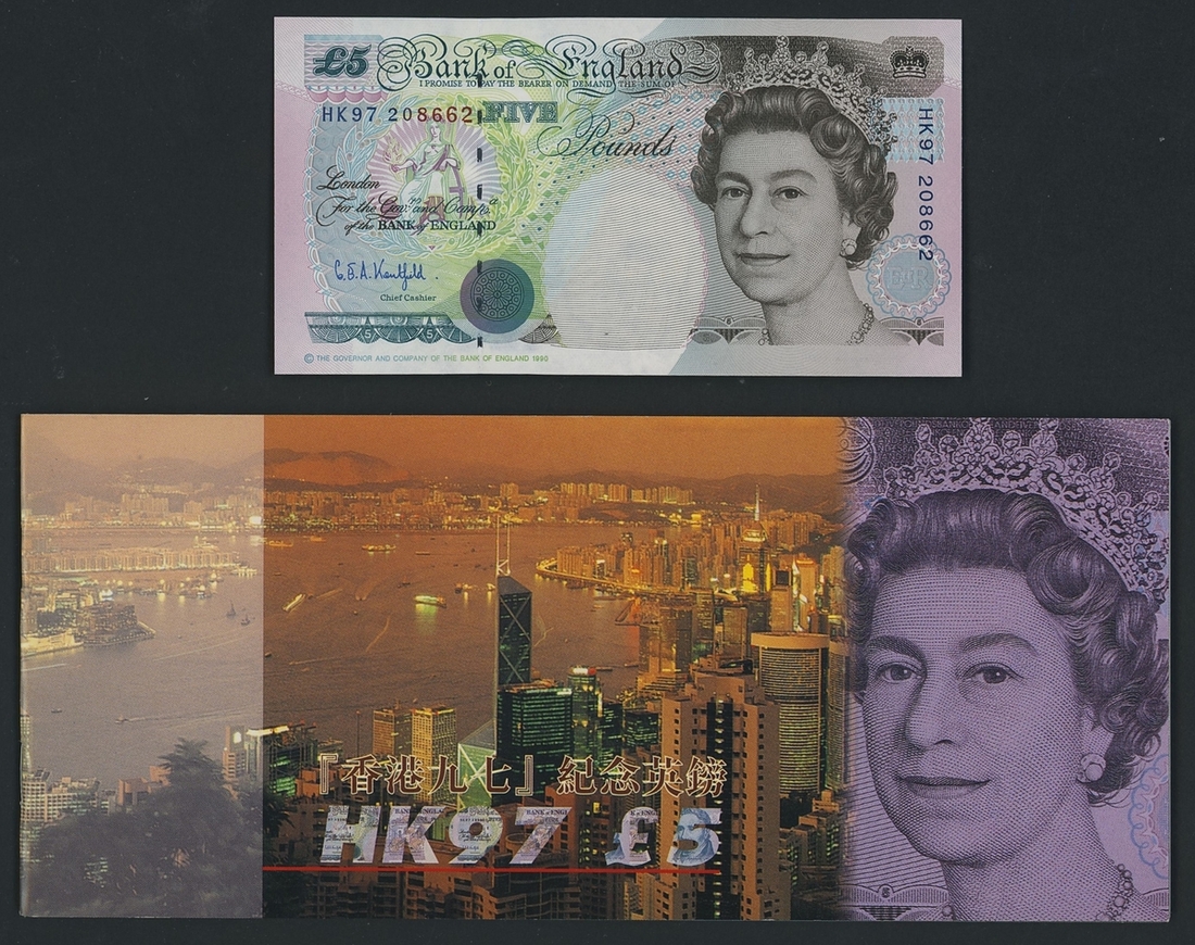 including Debden security printing £5 Hong Kong Handover, 1997, serial number HK97 208662,