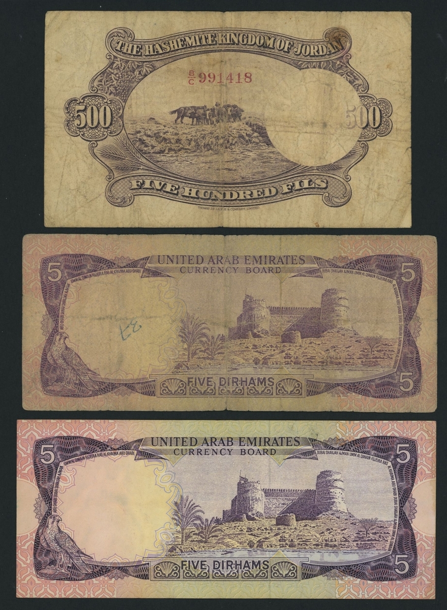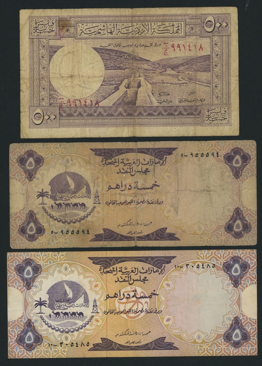 (x) United Arab Emirates/Jordan, [5 notes], 1949-1973,