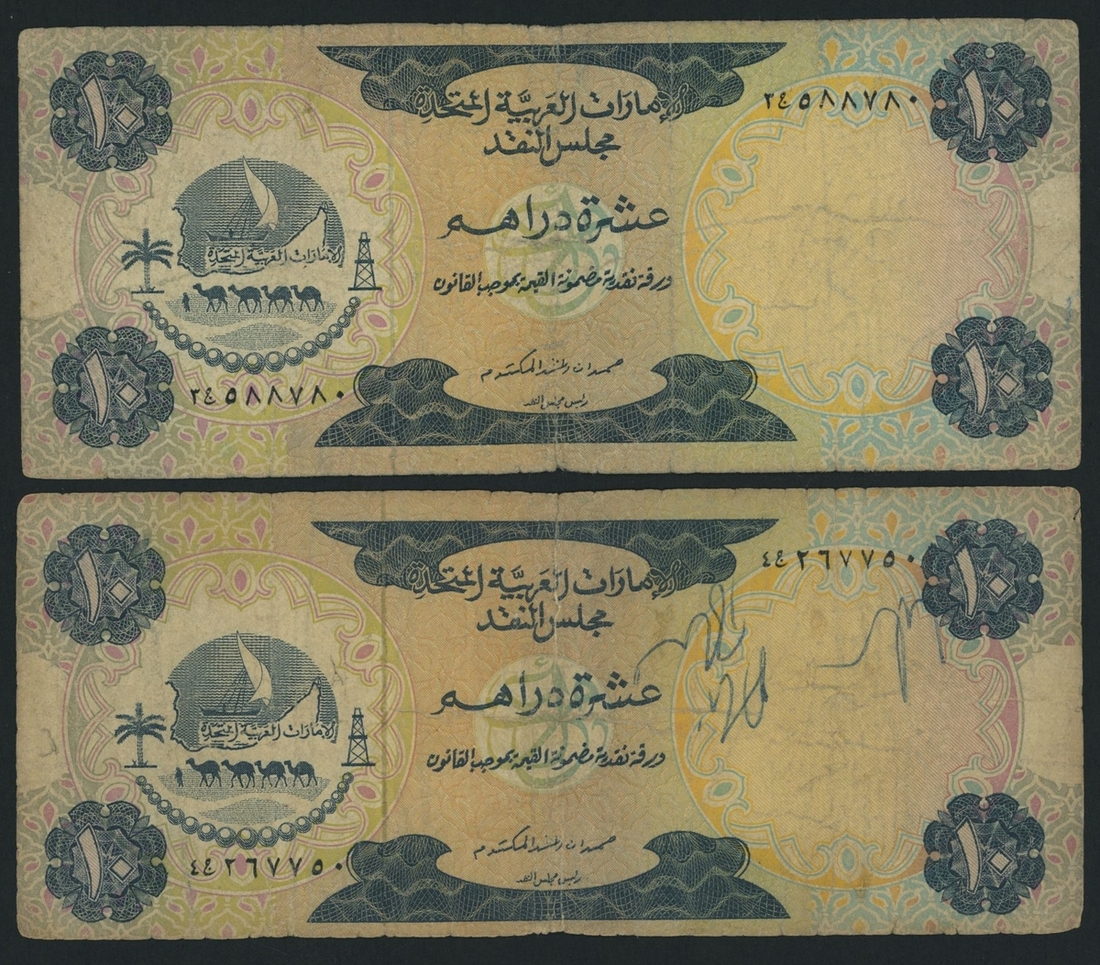 10 Dirhams, ND (1973), serial number 4G 267750,