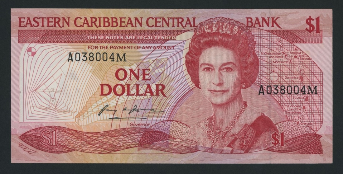 Eastern Caribbean Central Bank, East Caribbean States / Monserrat, 1 Dollar, ND (1986-88), serial number A038004M, (Pick 17m), Uncirculated