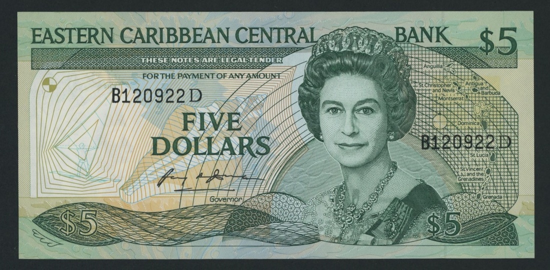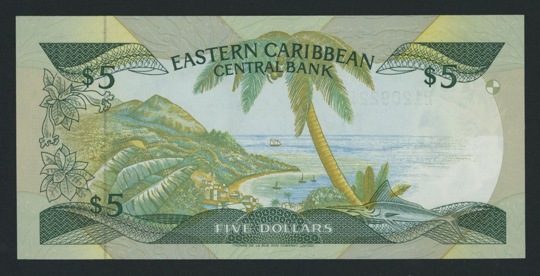 Eastern Caribbean Central Bank, East Caribbean States / Dominica, 5 Dollars, ND (1988-89), serial number B120922D, (Pick 22d), Uncirculated