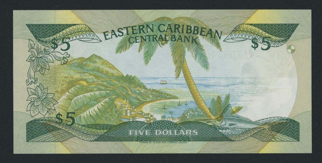 Eastern Caribbean Central Bank, East Caribbean States / St Lucia, 5 Dollars, ND (1986-88), serial number A170964L, (Pick 18l), Uncirculated