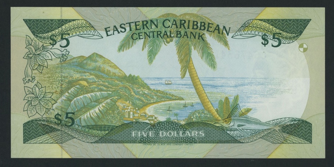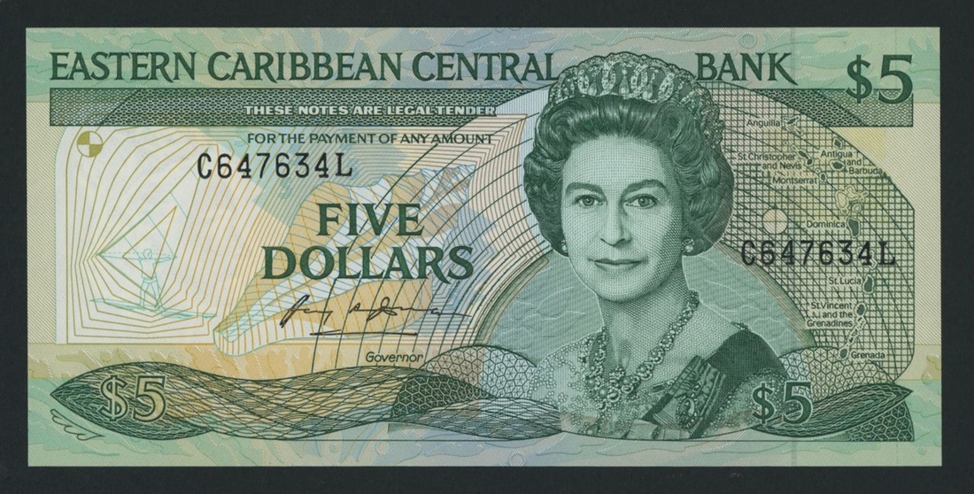 Eastern Caribbean Central Bank, East Caribbean States / St Lucia, 5 Dollars, ND (1988-93), serial number C647634L, (Pick 22l), Uncirculated