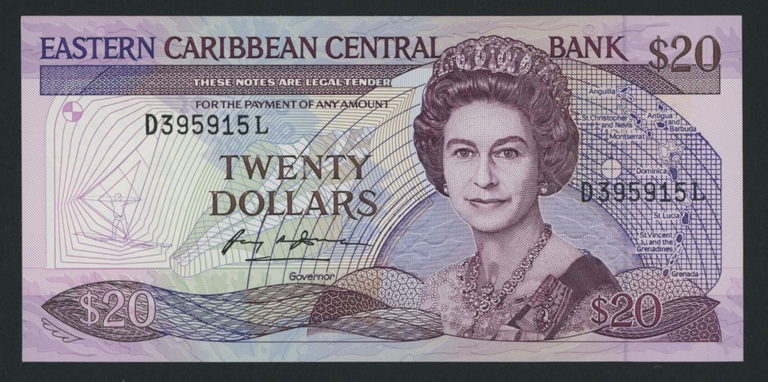Eastern Caribbean Central Bank, East Caribbean States / St Lucia, 10 Dollars, ND (1988-93), serial number D395915L, (Pick 24l), Uncirculated