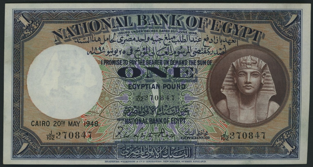 National Bank of Egypt, £1, Cairo, 20th May 1948, serial number J/102 370847, (Pick 22, BNB 121f), good extremely fine