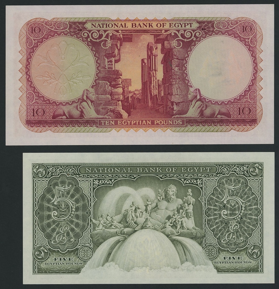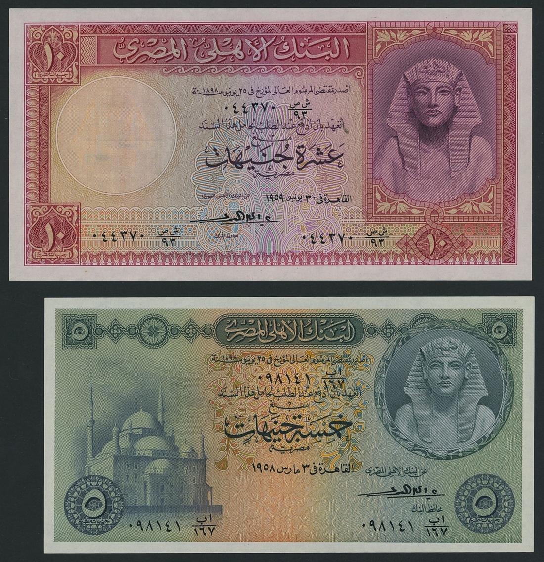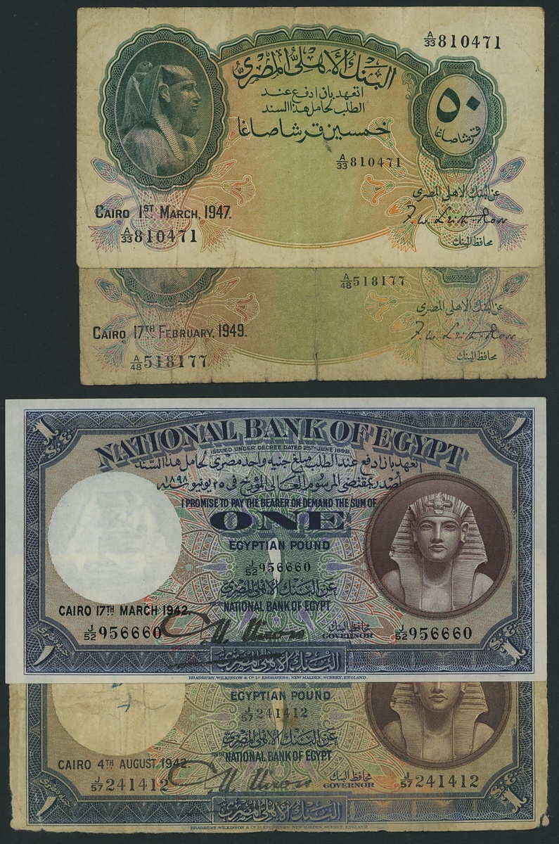 (x) National Bank of Egypt, [6 notes] 50 Piastres, £1, £5, £10, 1940-59, (Pick 21d, 22c, 31, 32), fine to extremely fine (6 notes)