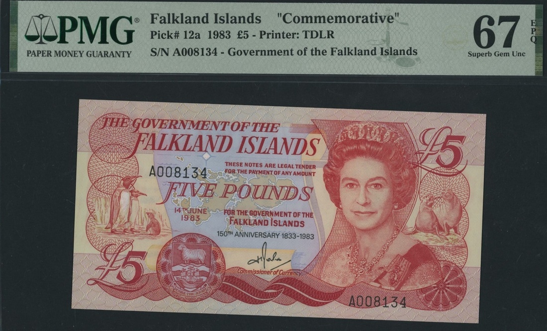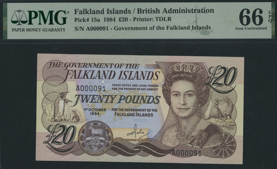 (x) Government of the Falklands, [4 notes] £1, £5, £10, £20, 1983-6, including commemorative and low serial number notes,
