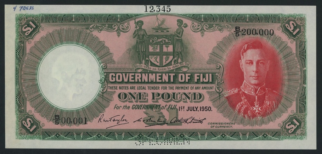 (x) Government of Fiji, specimen £1, 1st July 1950, serial number B/5 00001 - B/5 200000, perforated SPECIMEN