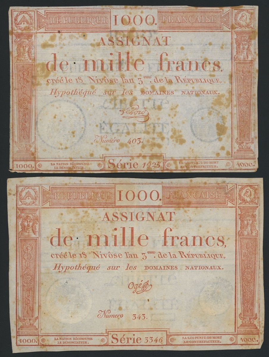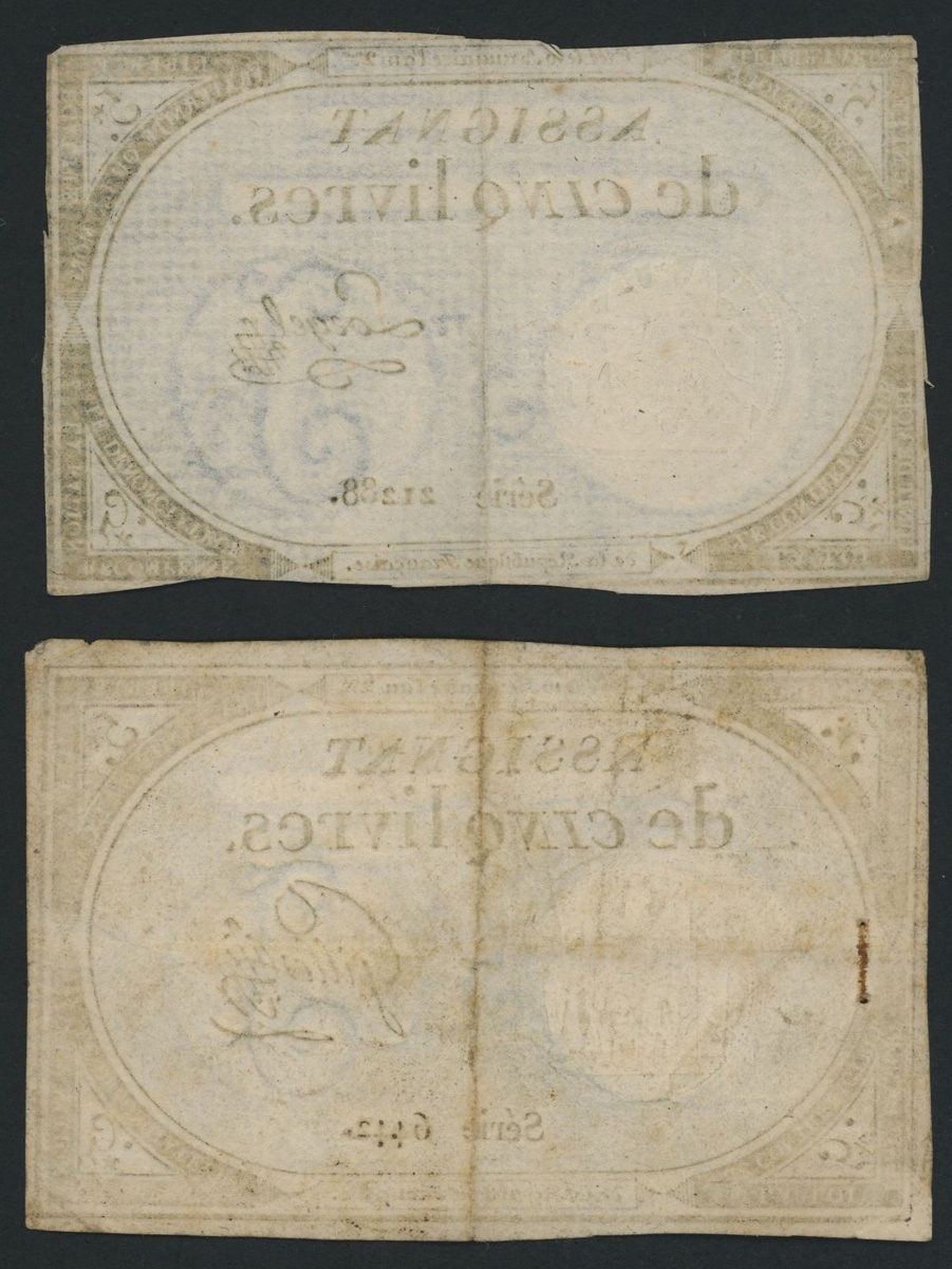 Assignats, France, [4 notes], 1000 francs ND 1795 (2), 5 livres ND 1793 (2), (Pick A76, A80), good fine to about very fine [4 notes]