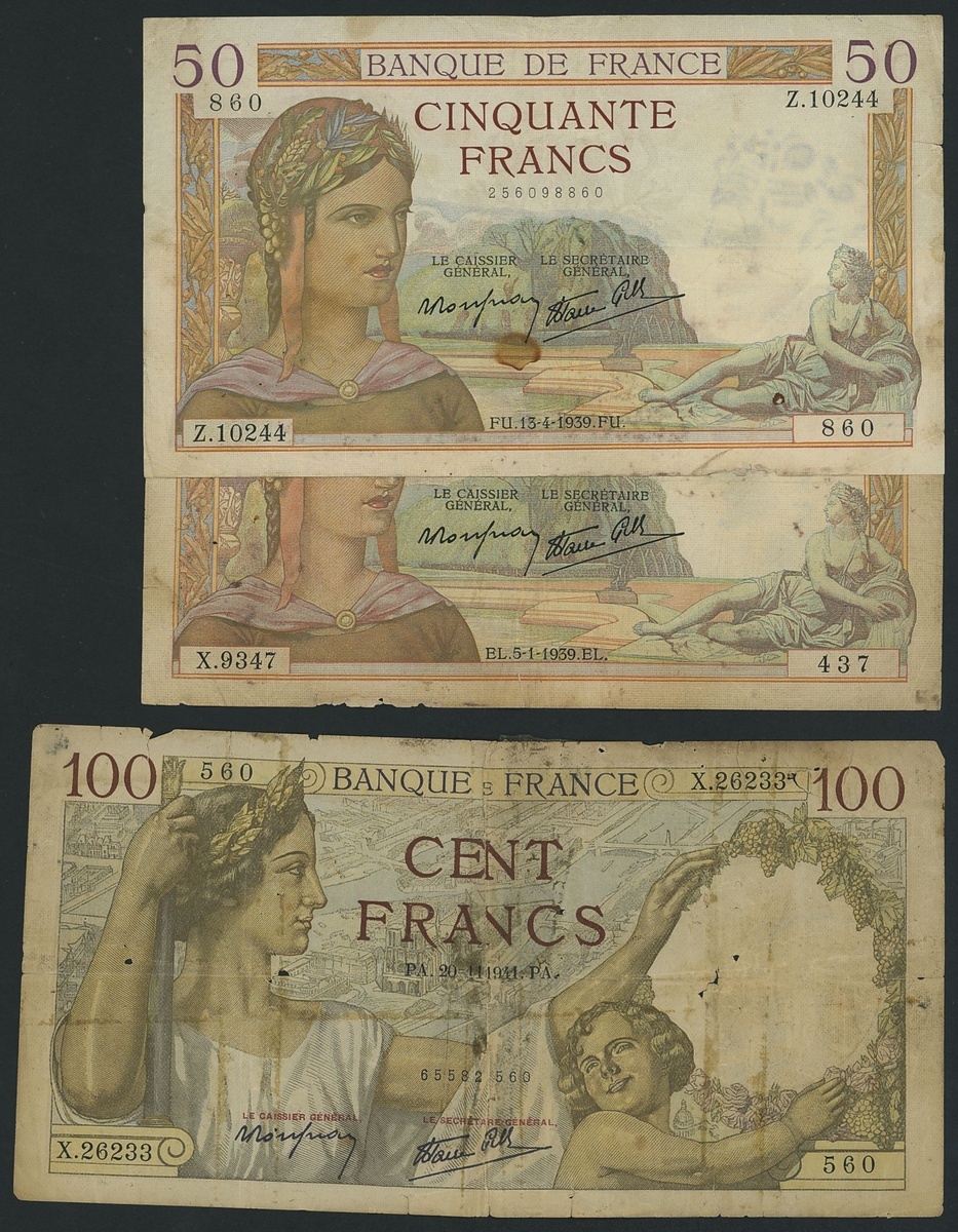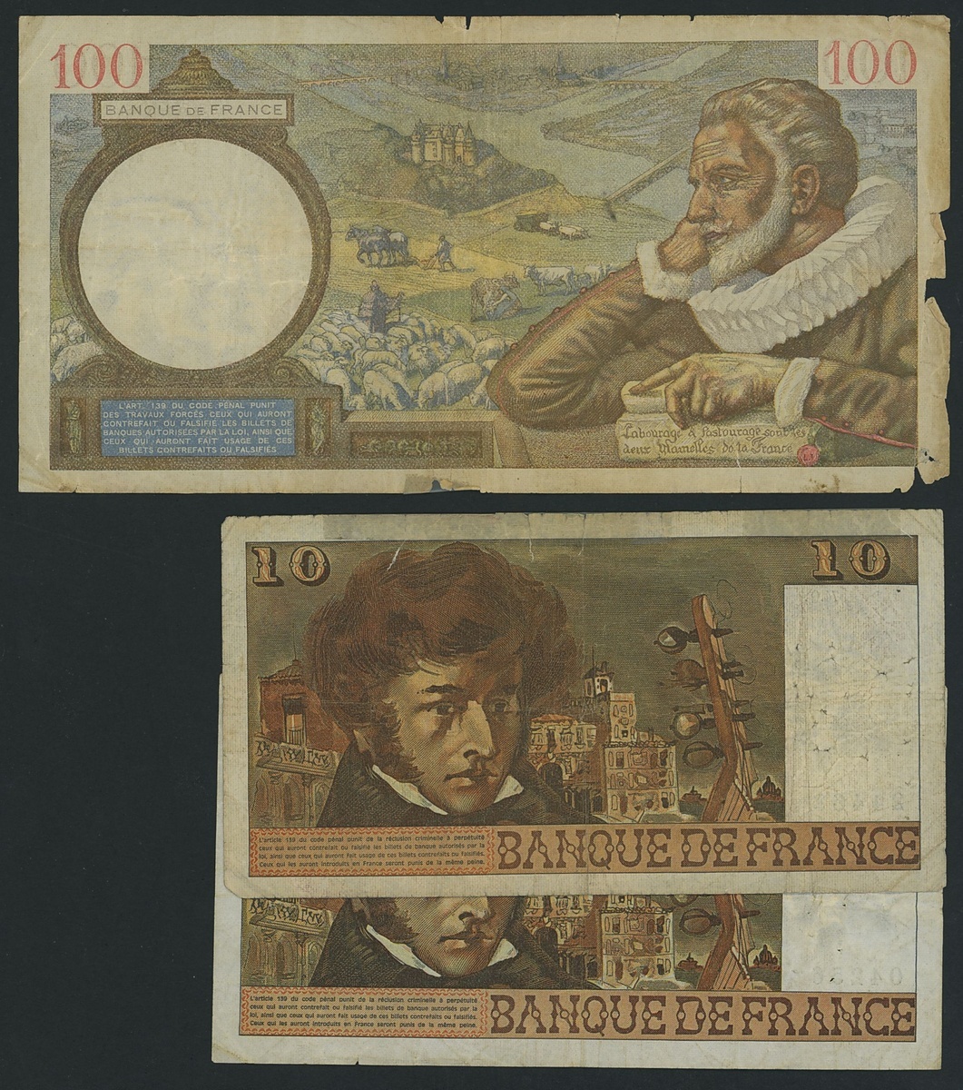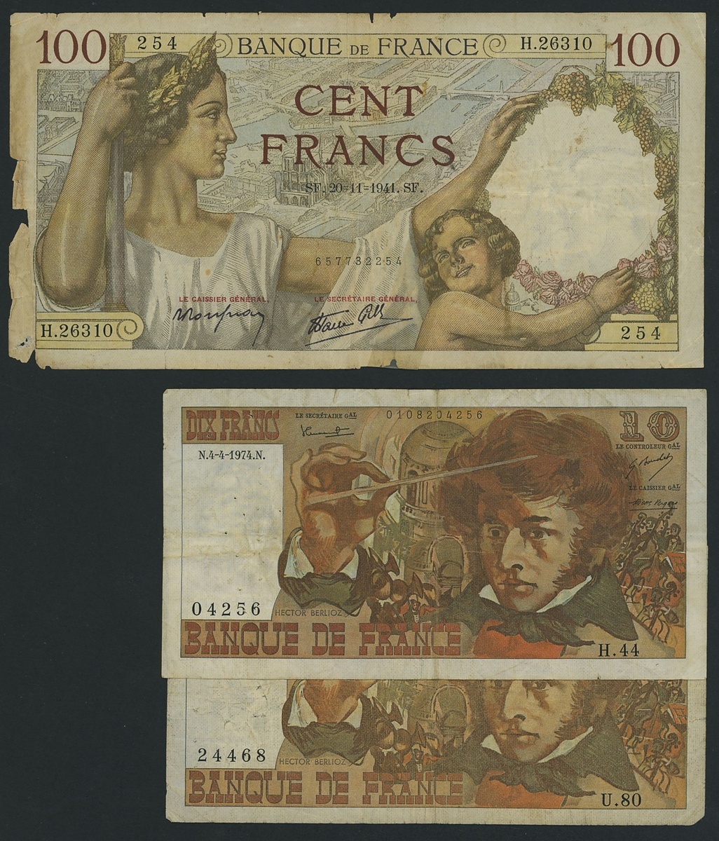 (x) France, [6 notes] 10, 50 & 100 Francs, 1937-74, (Pick 85, 94, 150), very good to good fine