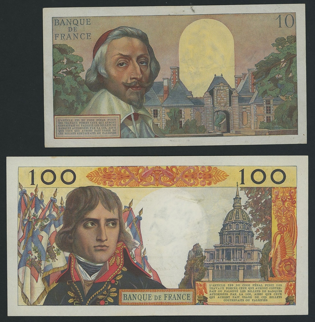 Banque de France, [2 notes] 10, 100 Francs, 1960-62, (Pick 142a, 144a), minor stains, otherwise good very fine