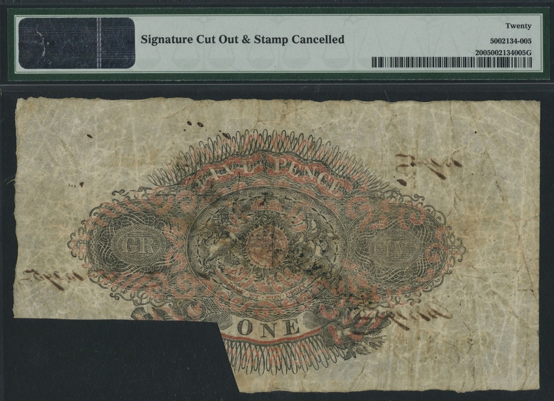 (Outing 556), in PMG holder 20 Very Fine, signature cut out, stamp cancelled