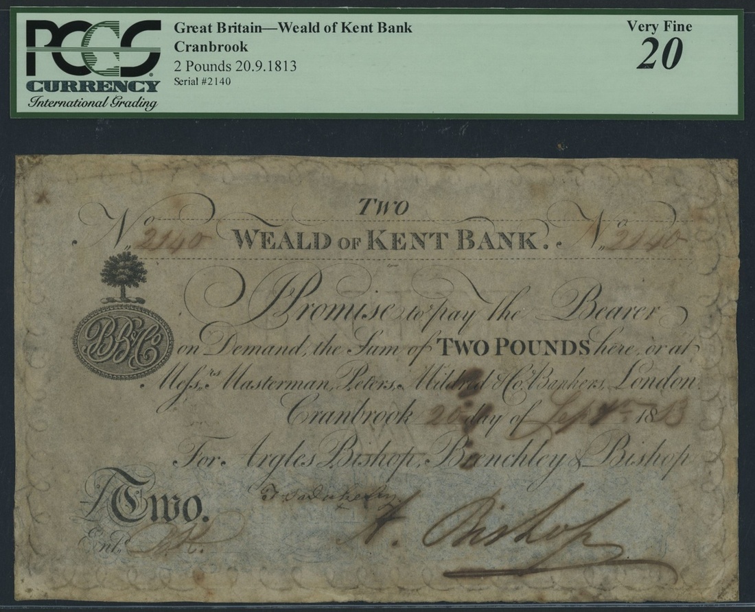 (x) Weald of Kent Bank, Great Britain, £2, Cranbrook, 20th September 1813, serial number 2140, (Outing 608a), in PCGS holder 20 Very Fine