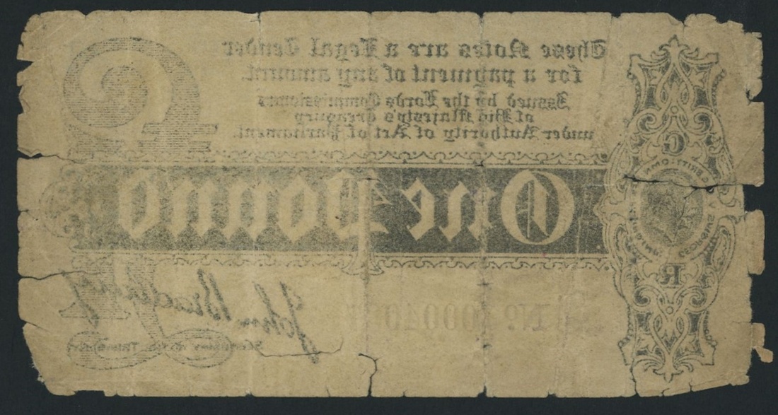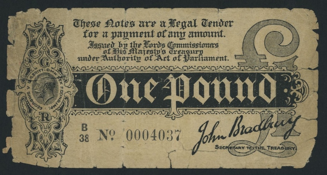 Treasury Series, John Bradbury, £1, ND (1914), serial number B/38 0004037,