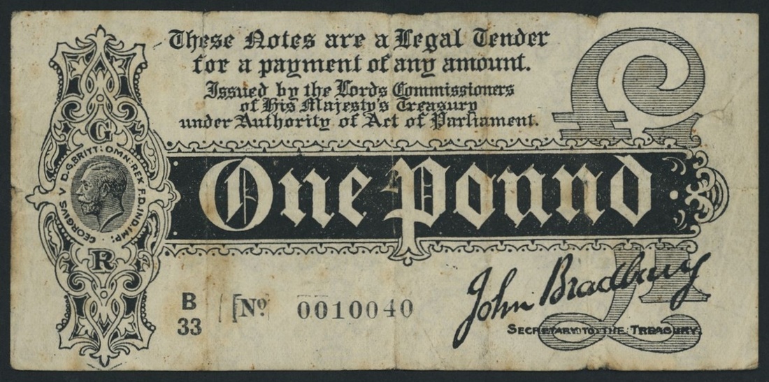 Treasury Series, John Bradbury, £1, ND (1914), serial number B/33 0010040,