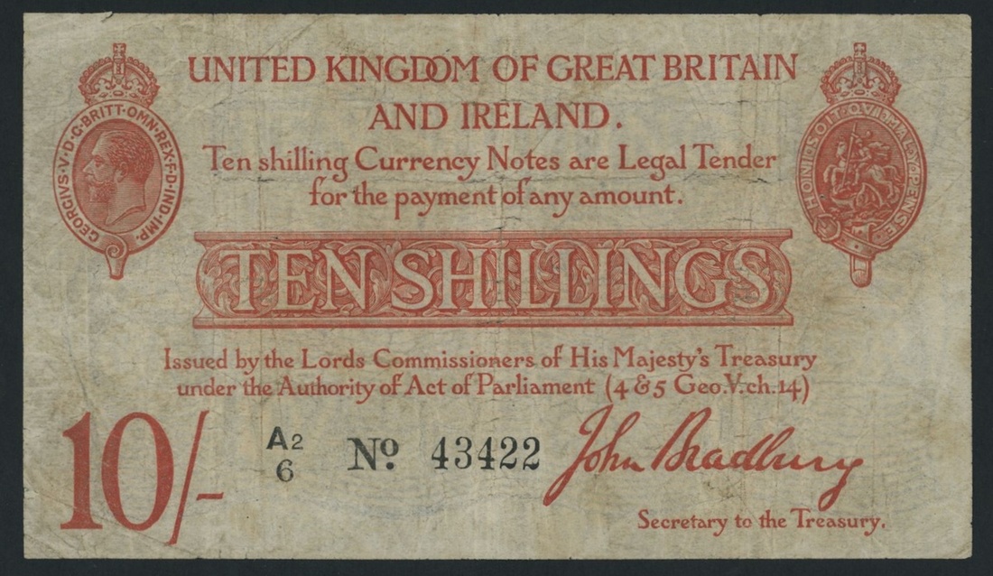 Treasury Series, John Bradbury, [2 notes] £1, ND (1914), serial number A2/6 43422,