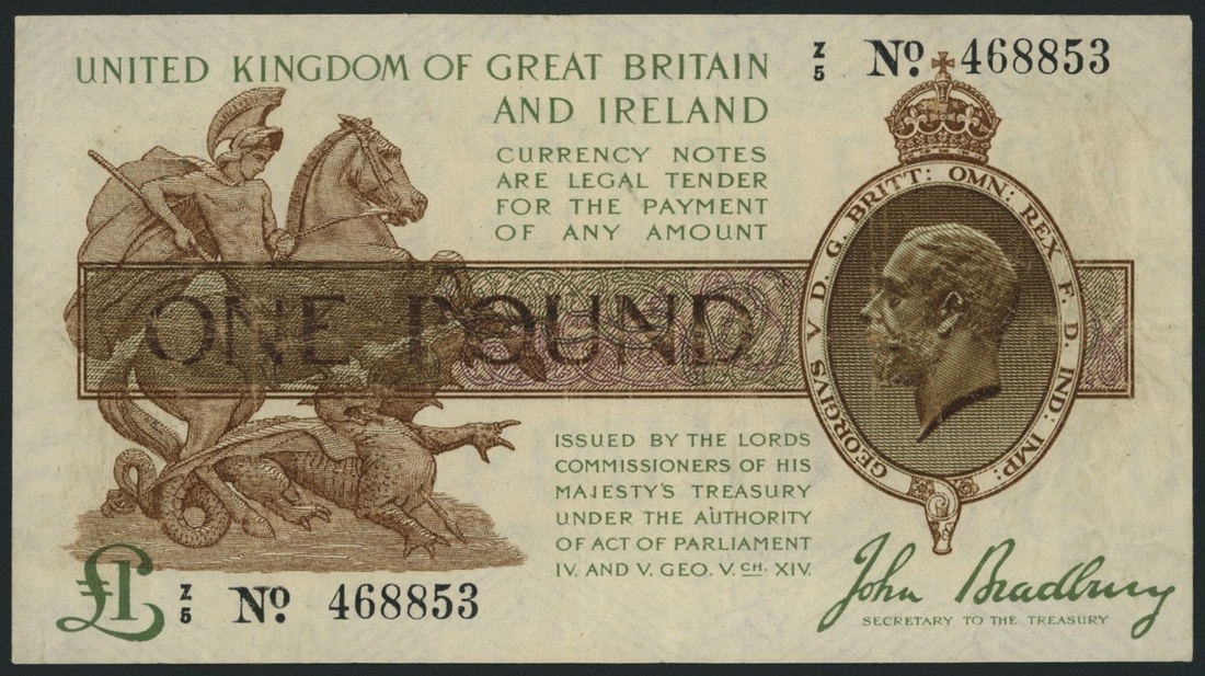 Treasury Series, John Bradbury, £1, 'Control Note', ND (1917), serial number Z5 468853, (EPM T16), good very fine, pinholes, stamped on reverse