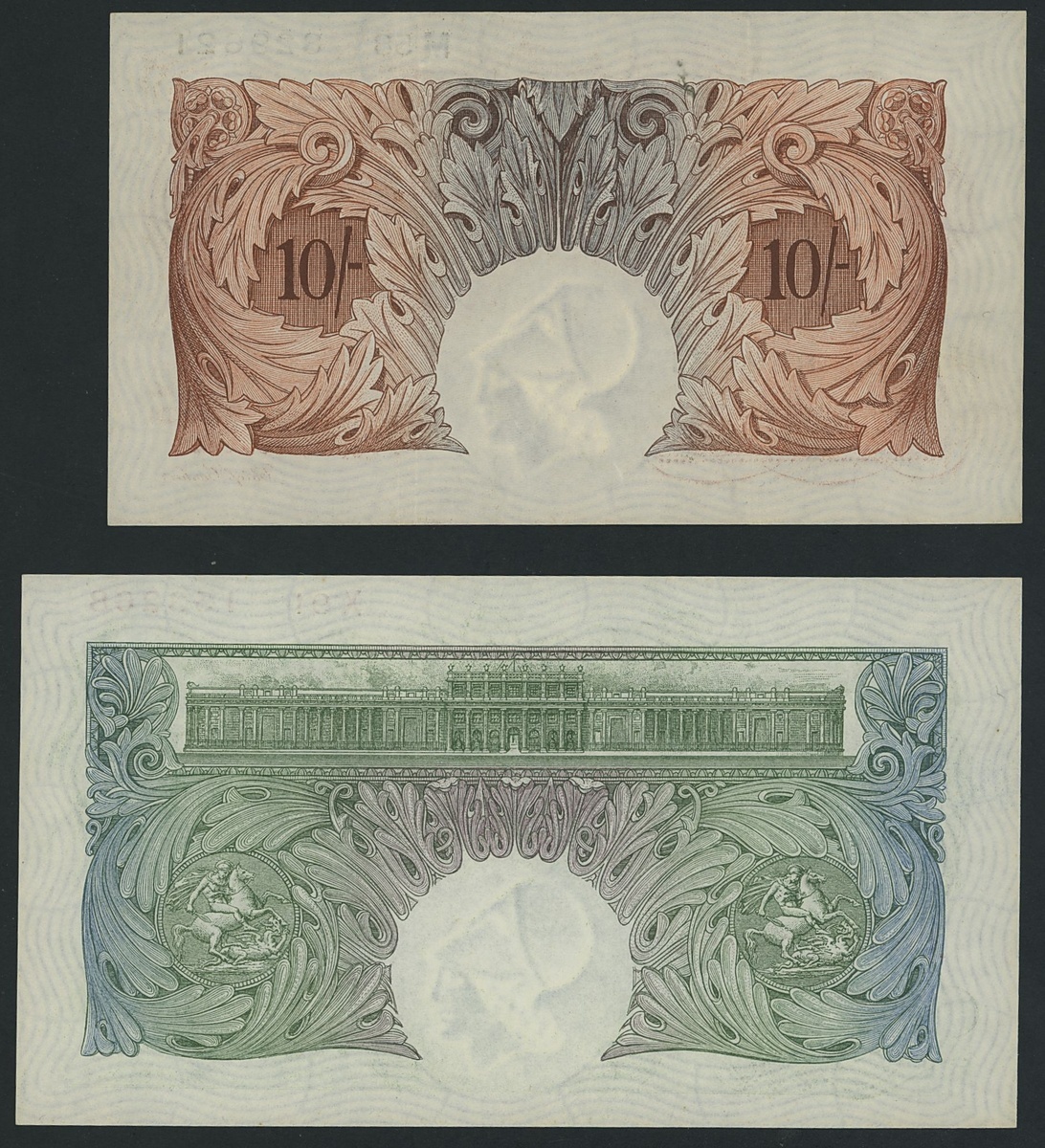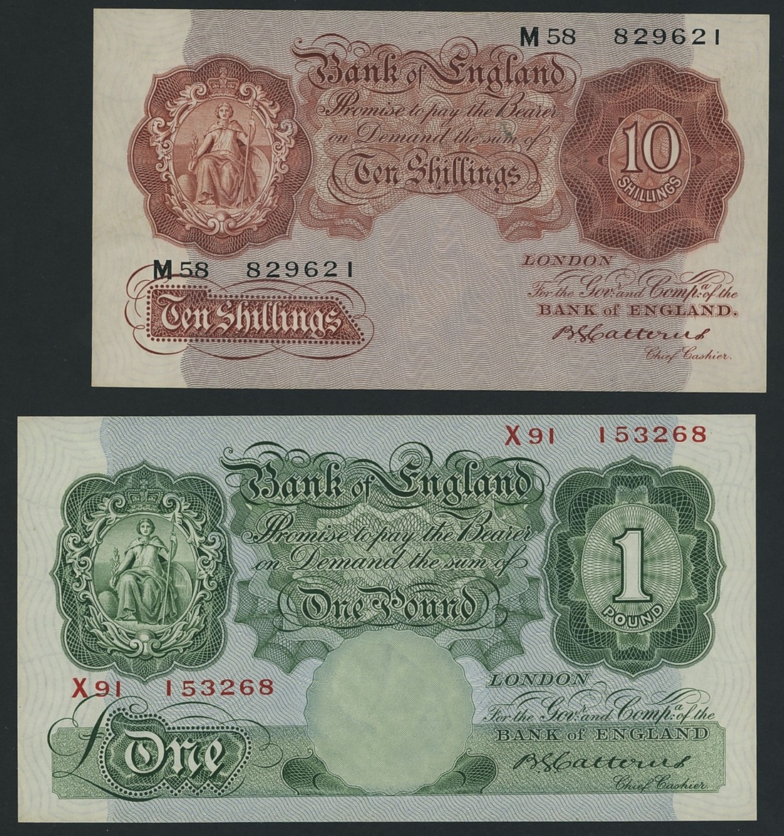 Bank of England, [2 notes] 10/-, £1, B. G. Catterns, 1930, serial numbers M58 829621, X91 153268, (EPM B223, B225), about extremely fine