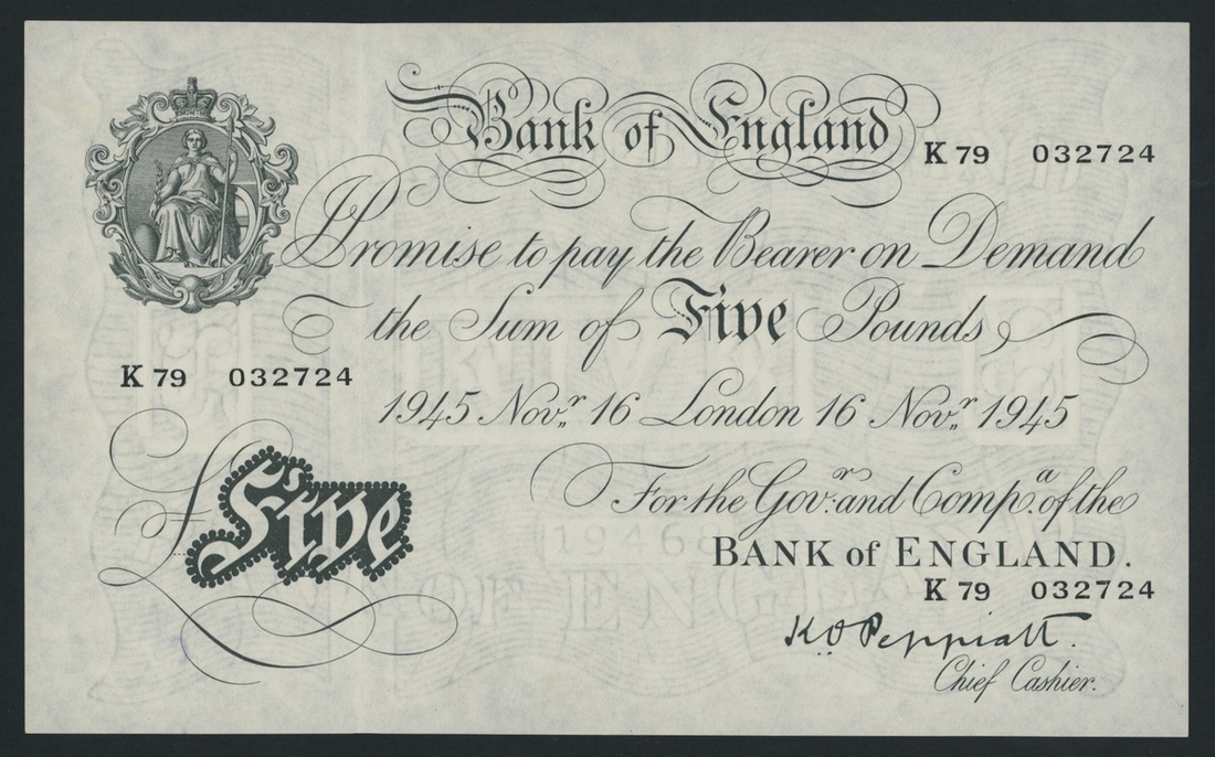 Bank of England, K. O. Peppiatt, [2 notes] £5, London, 1945-7,