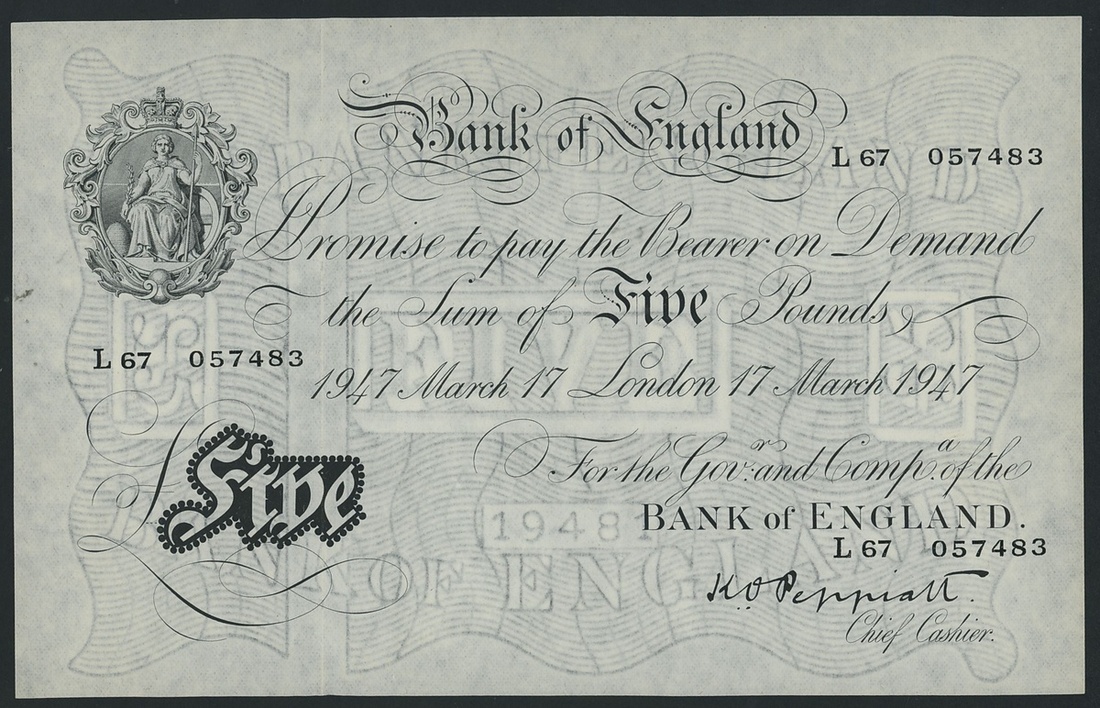 Bank of England, £5, K. O. Peppiatt, 17th March 1947, serial number L67 057483, (EPM B264), good extremely fine
