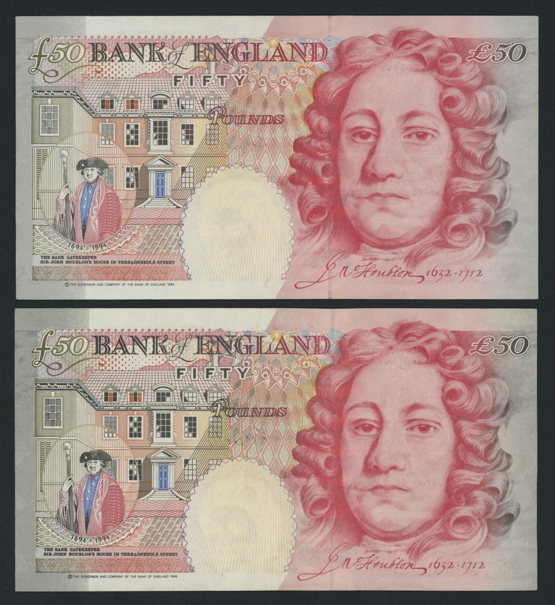 Bank of England, G. E. A. Kentfield, [2 notes] £50, 1994, Experimental Issues, serial numbers A99 621856 and M99 963413,