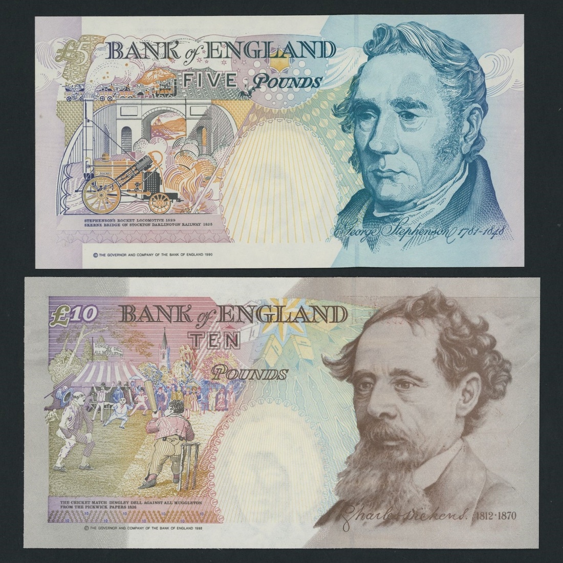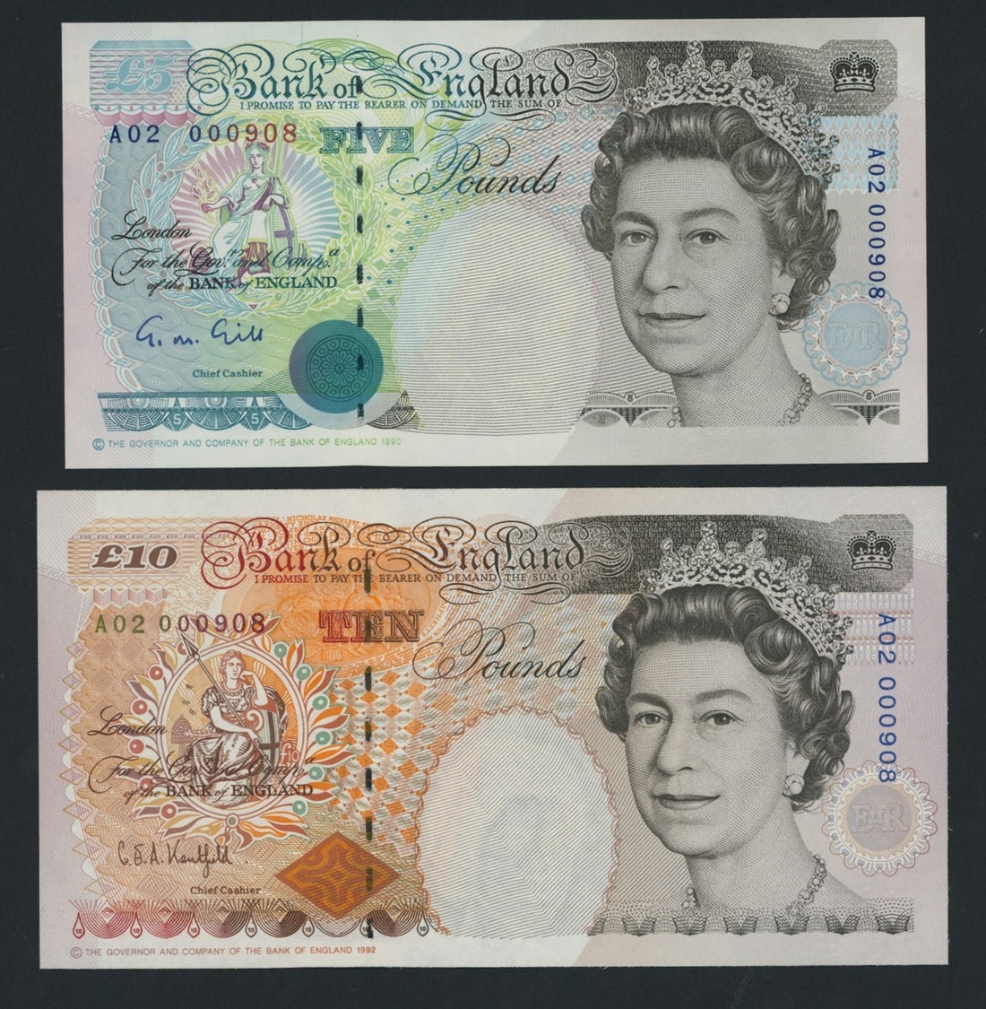 Bank of England, G. E. A. Kentfield, [2 notes] £10, £50, 1992-4, FIRSTS serial numbers A01 000908,