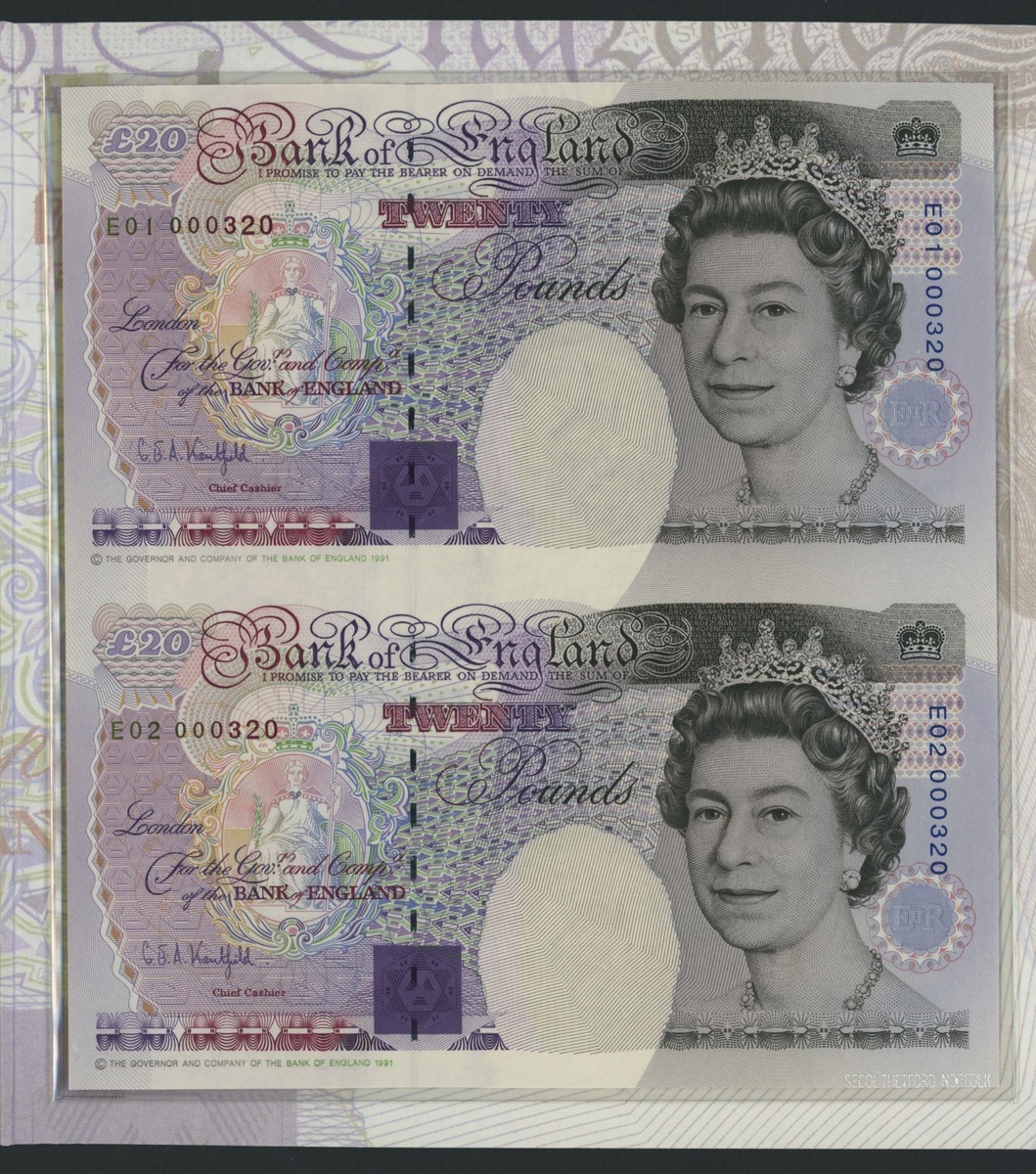 Bank of England, [1 piece] FIRST UNCUT PAIR, 1995, serial numbers E01 and E02 000320,