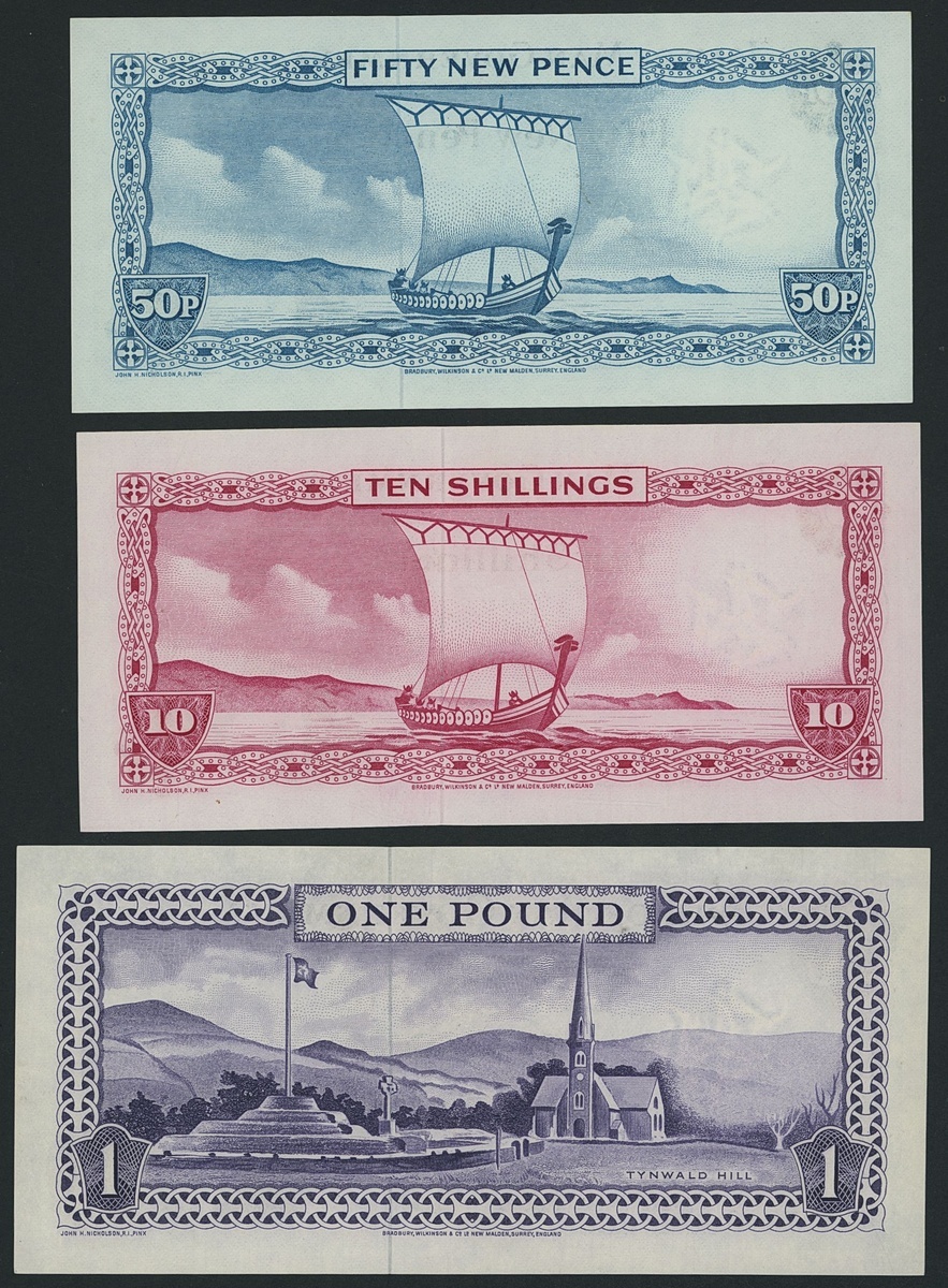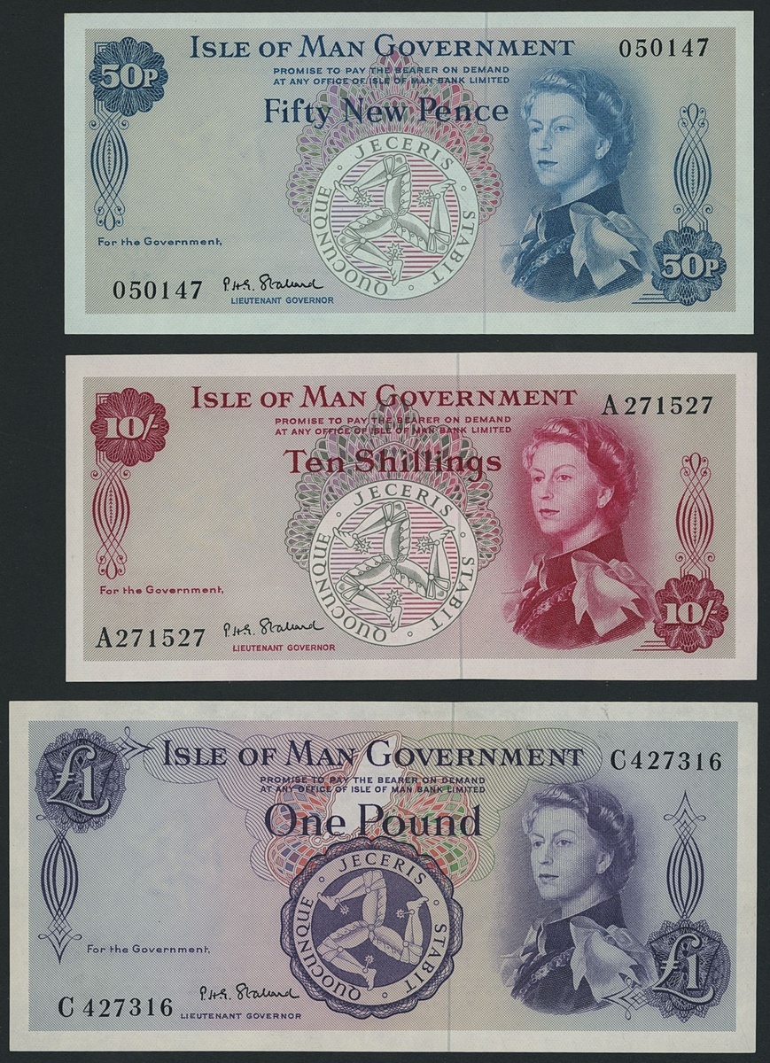 (x) [4 notes] Isle of Man Government, 10/-, 50p, £1, £5, 1961-1969,