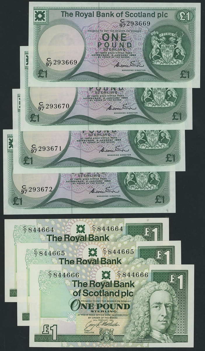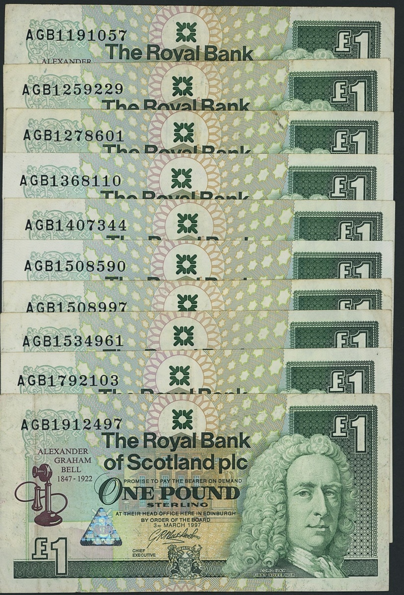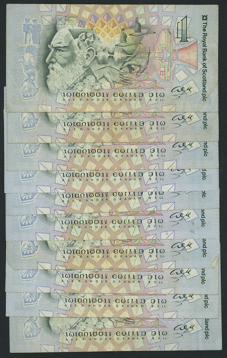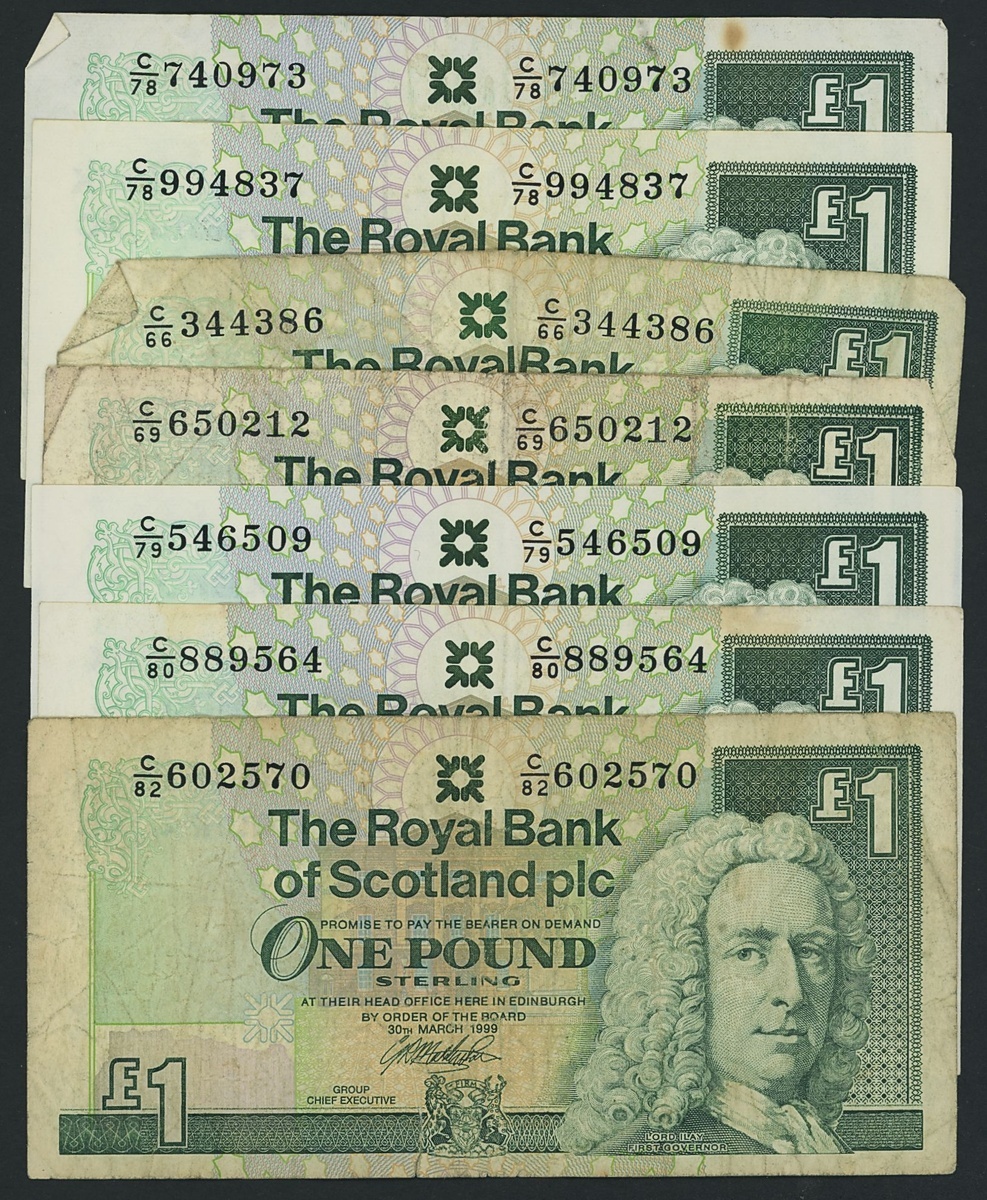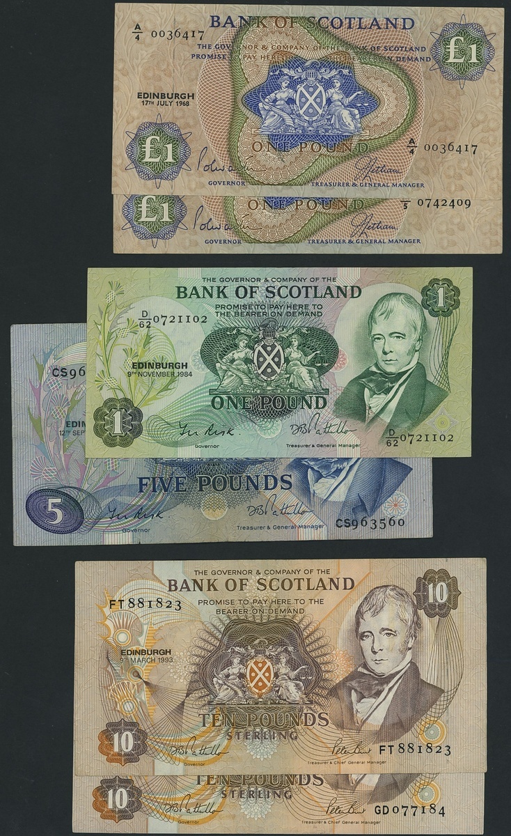 Large group of Scottish notes, [150+ notes] £1, £5 & £10, 1964-2005, including group of 7 Bank of Scotland notes,