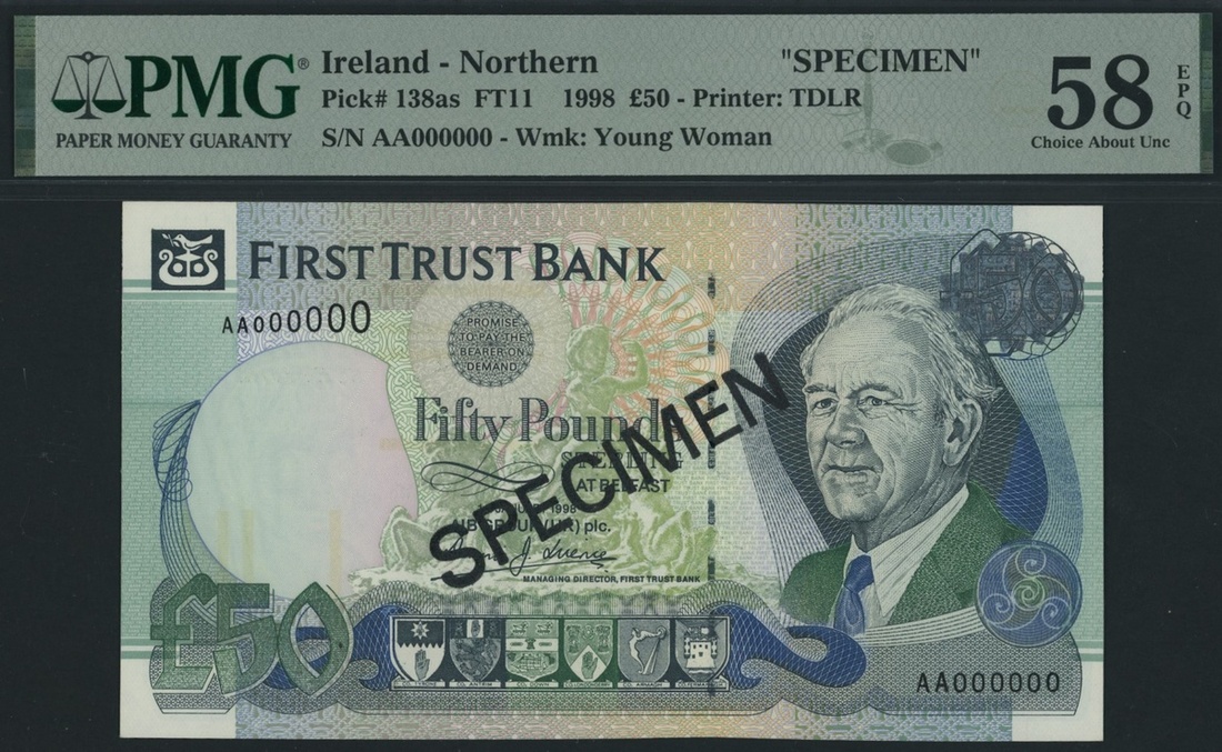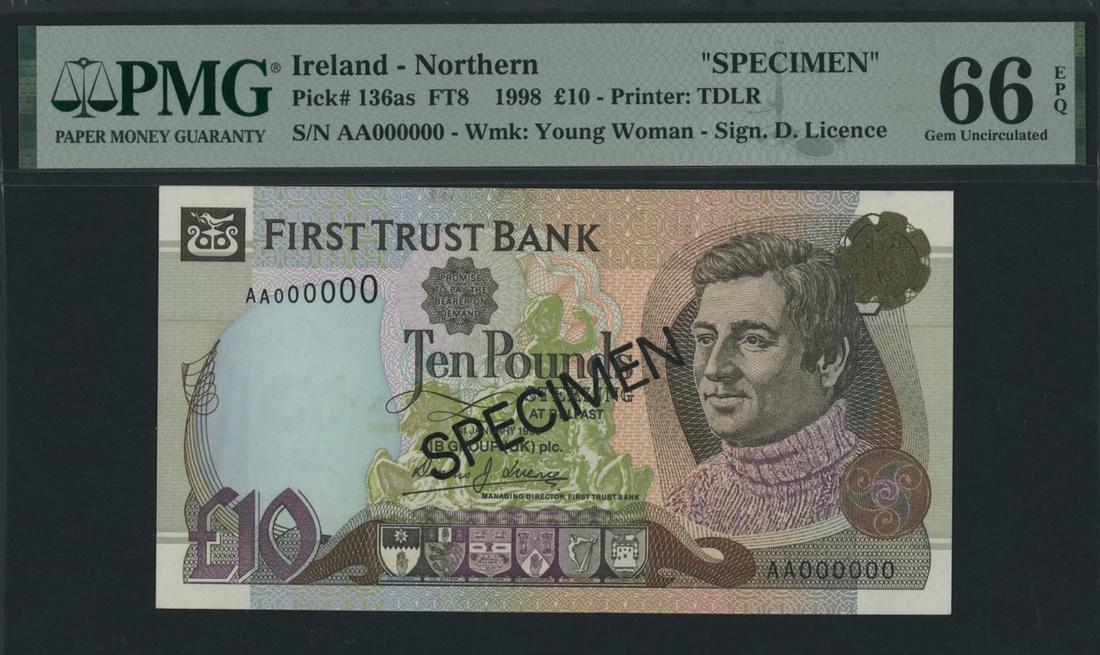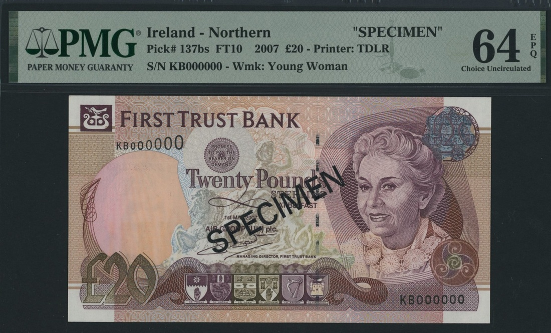 (x) First Trust Bank, Northern Ireland, [3 notes] specimen £10, £20, £50, Belfast, 1998-2007,