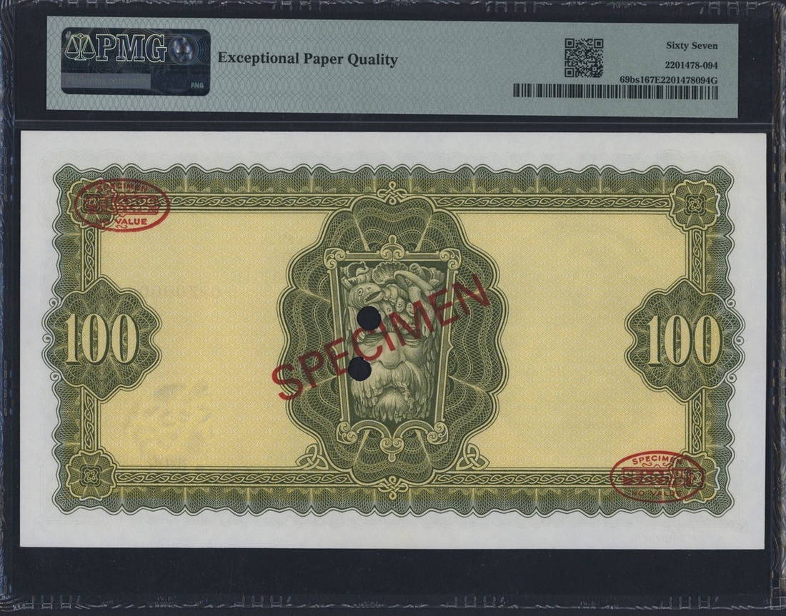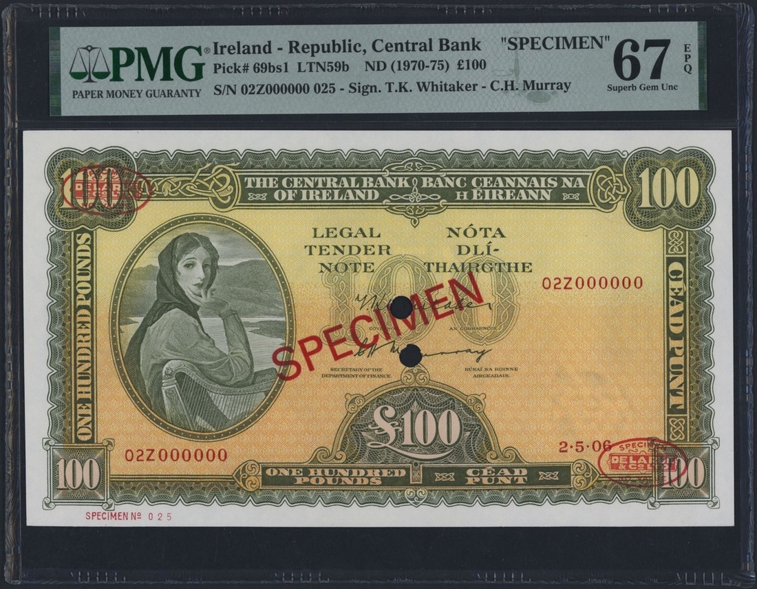 (x) The Central Bank of Ireland, Ireland - Republic, *TOP POP* Specimen £100, 2nd May 2006, serial number 02Z000000 025, (Pick 69bs1, LTN59b), in PMG holder 67 EPQ Superb Gem Uncirculated, the SIngle Finest graded on PMG census