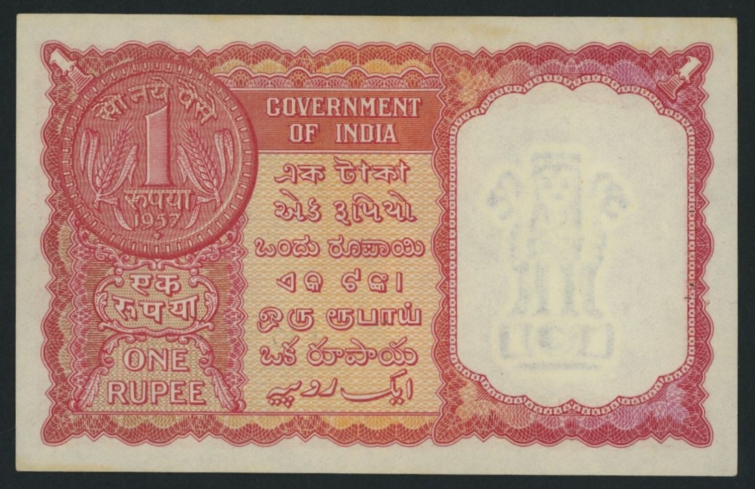 (x) Government of India, 1 Rupee, 1957, serial number Z10 169608 B, (Pick R1, BNB R101), good extremely fine