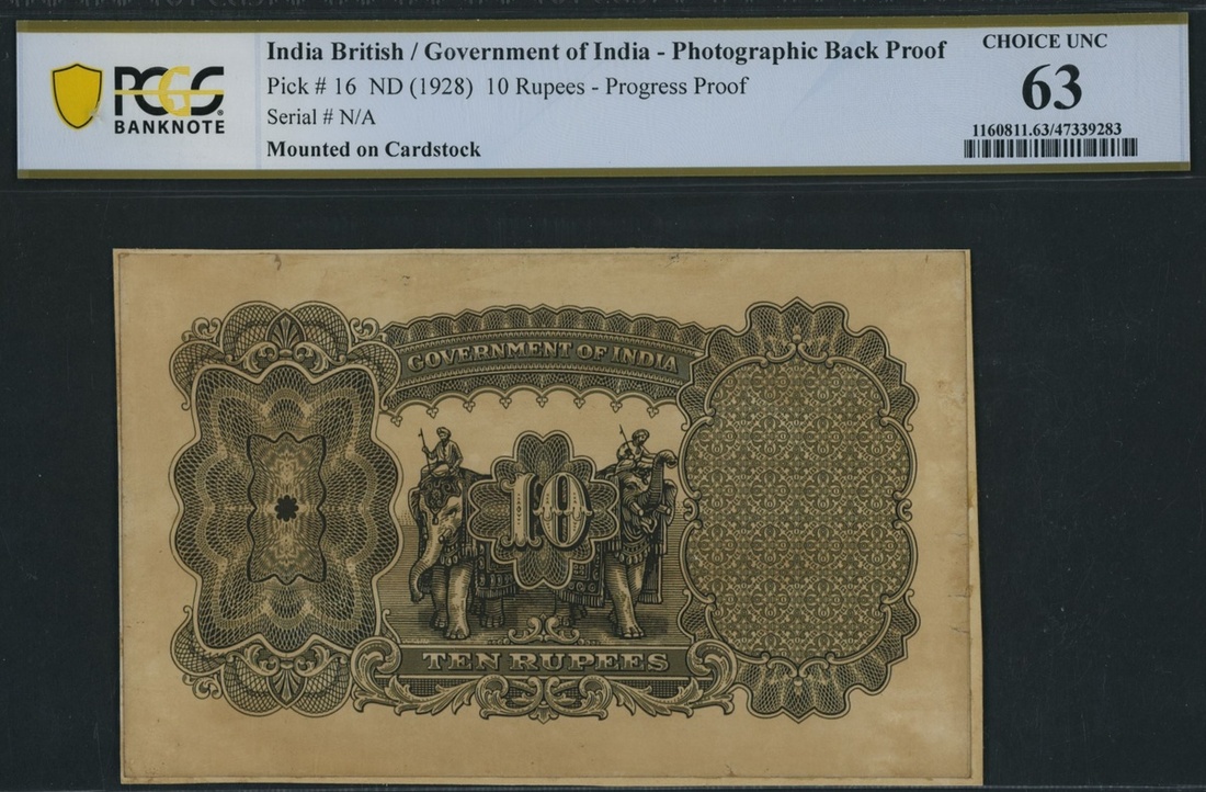 (x) Government of India, Photographic Back Proof, 10 rupees, ND (1928), (Pick 16), in PCGS holder 63 Choice Uncirculated