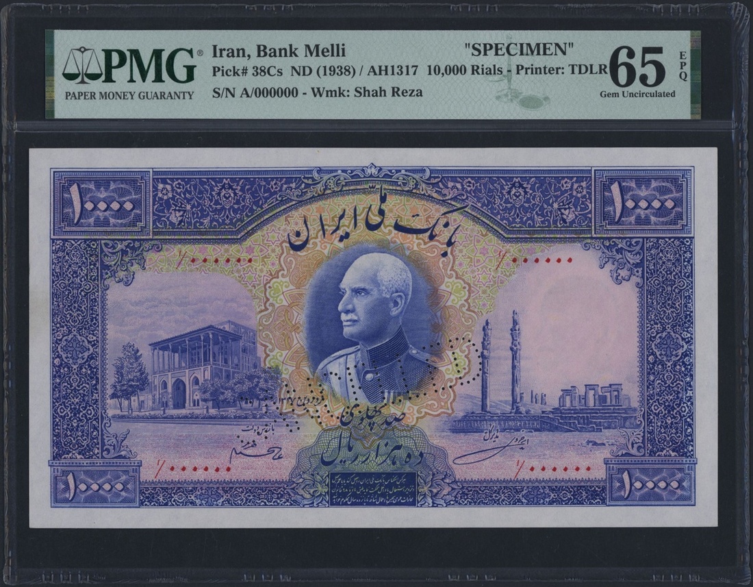 (x) Bank Melli, Iran, specimen 10,000 Rials, ND (1938) / AH1317, serial number A/000000,