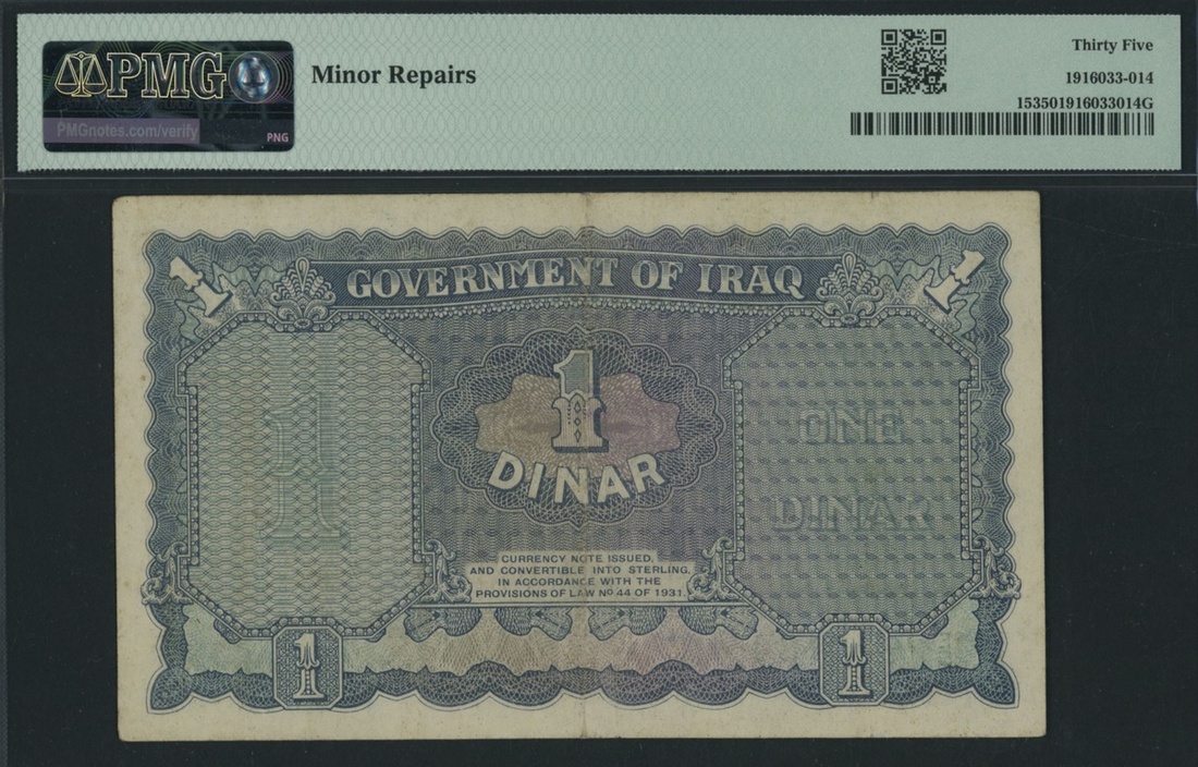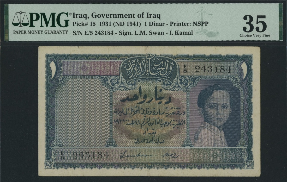 Government of Iraq, 1 Dinar, L. 1931 (ND 1941), serial number E/5 243184,