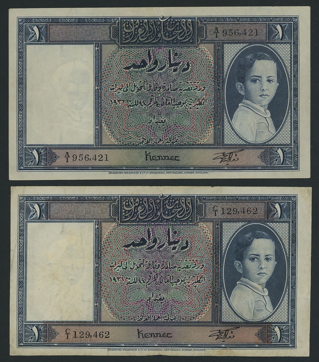 (x) Government of Iraq, [2 notes] 1 Dinar, 1942-44, serial numbers A/1 956421, C/1 129462, King Faisal II as child,