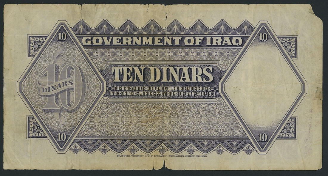 (x) Government of Iraq, 10 Dinars, 1942-44, serial numbers A 689047, King Faisal II as child,