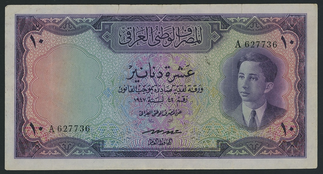 (x) Government of Iraq, 10 Dinars, 1947, serial number A 627736, King Faisal II as youth in dark jacket,