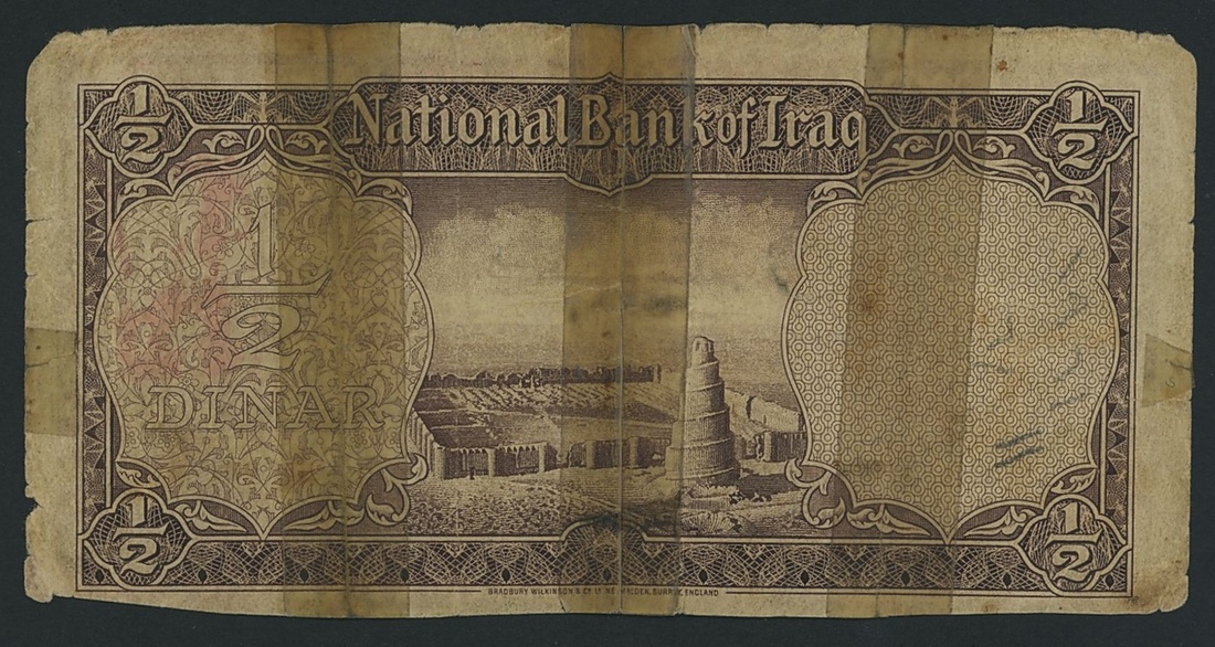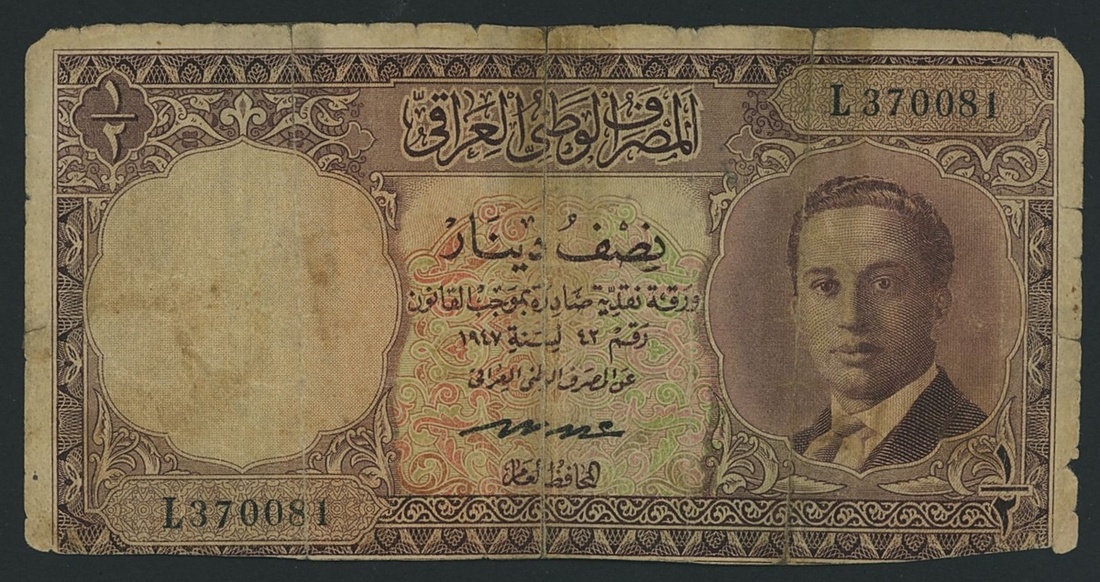 (x) Government of Iraq, 1/2 Dinar, 1947, serial number L 370081 King Faisal II as young man,