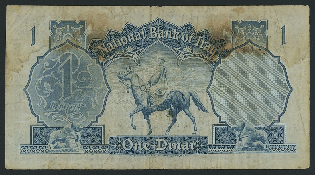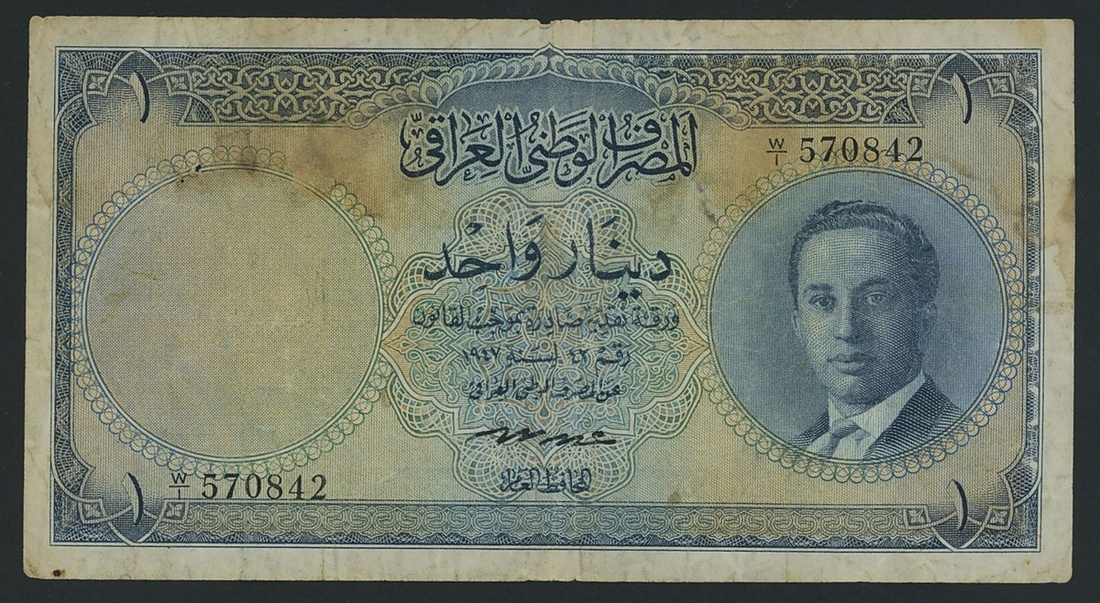 (x) Government of Iraq, 1 Dinar, 1947, serial number W/1 570842, King Faisal II as young man,