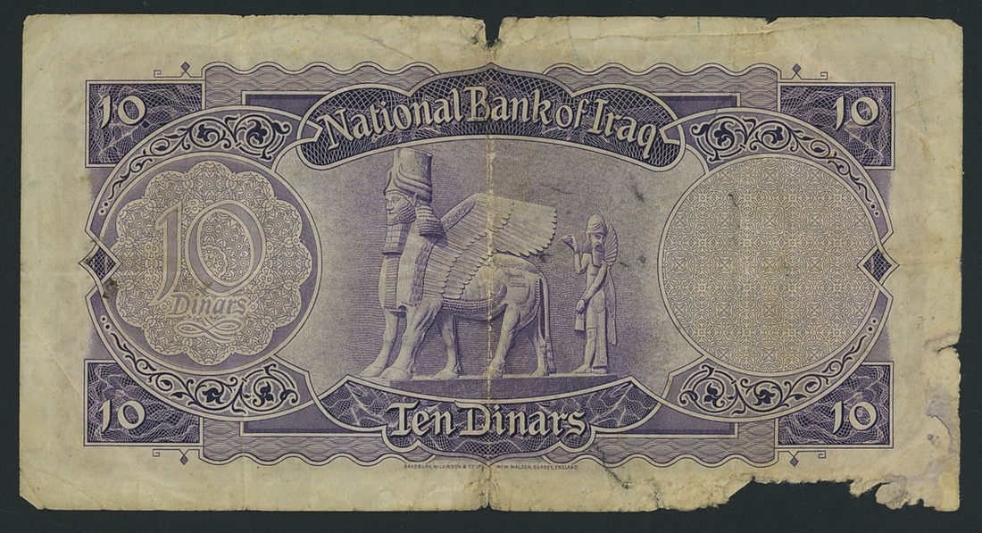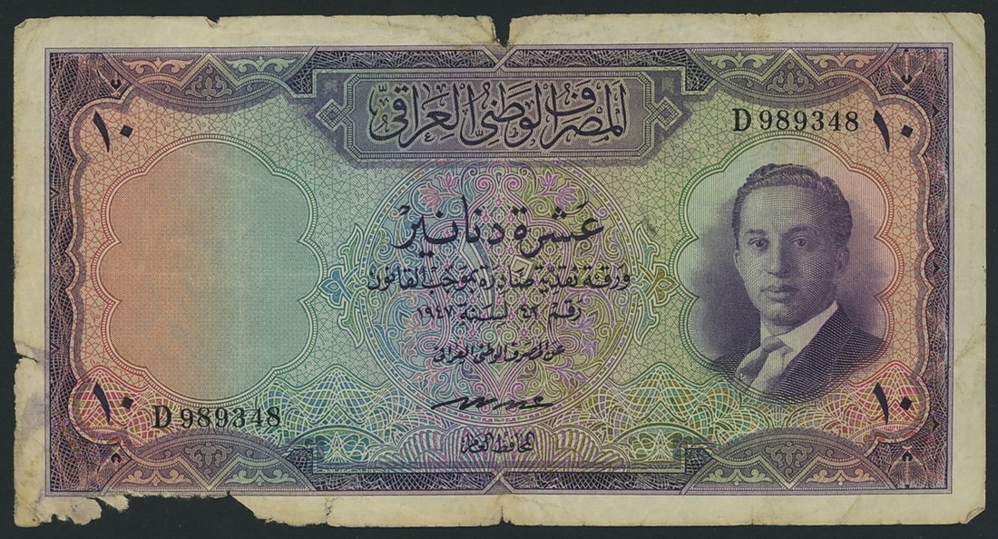 (x) Government of Iraq, 10 Dinar, 1947, serial numbers D 989348, King Faisal II as young man,