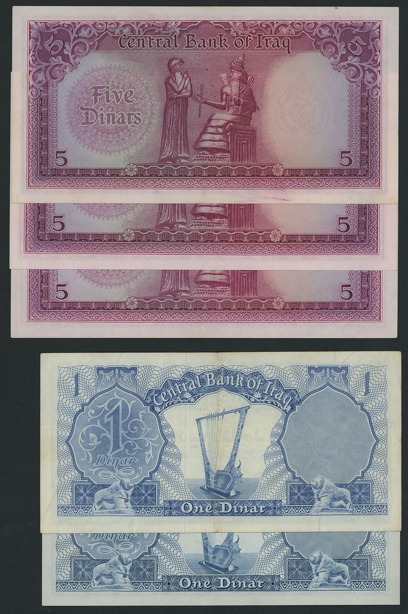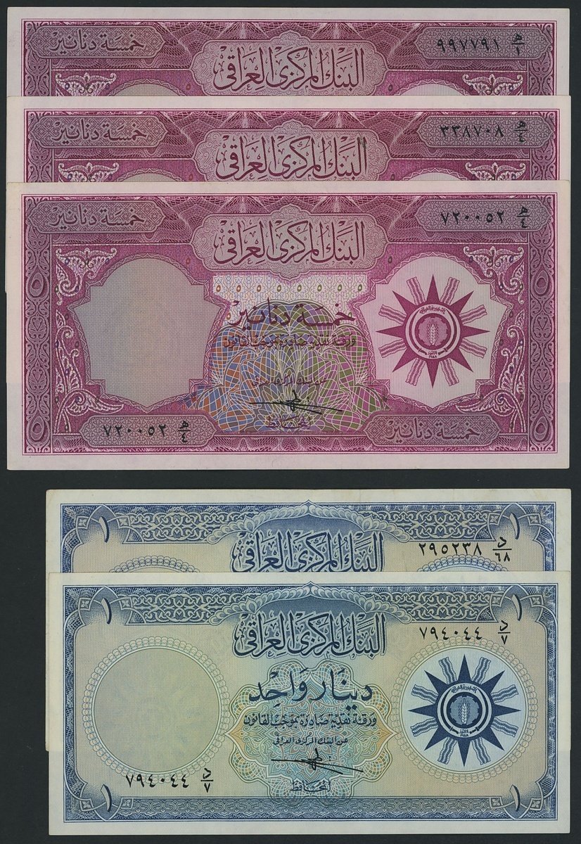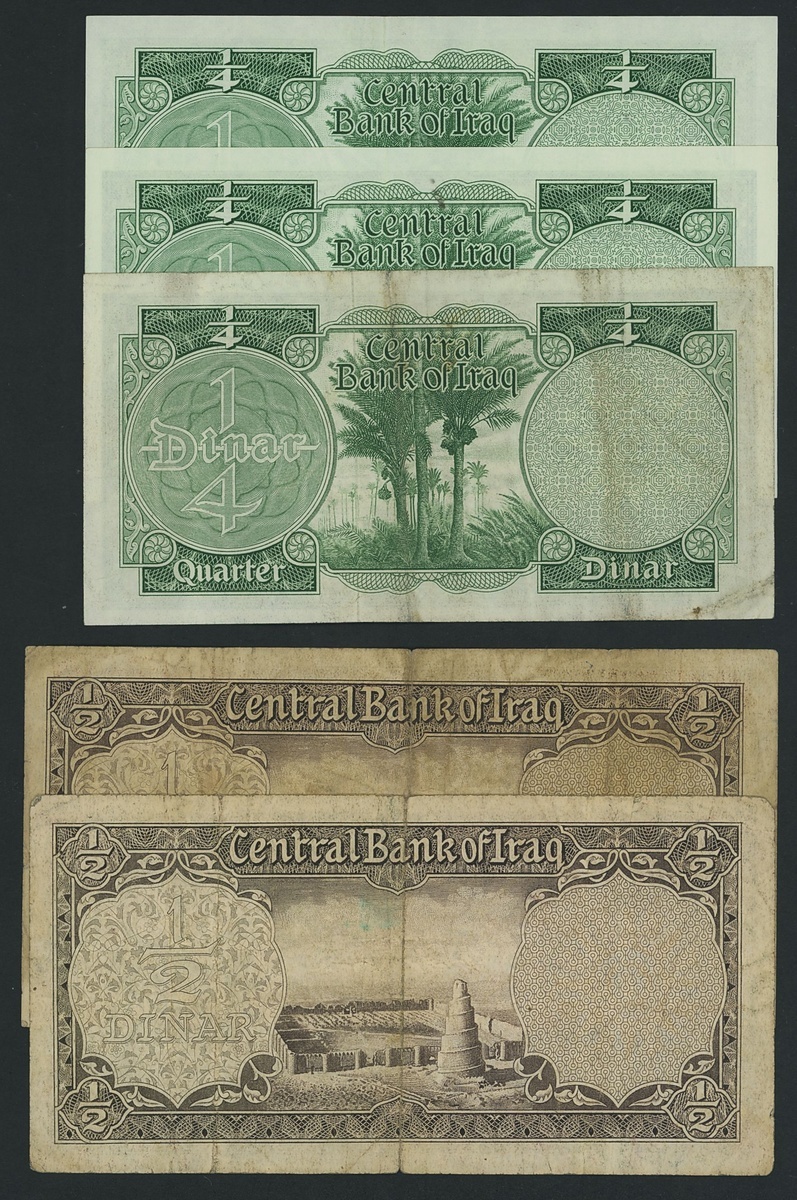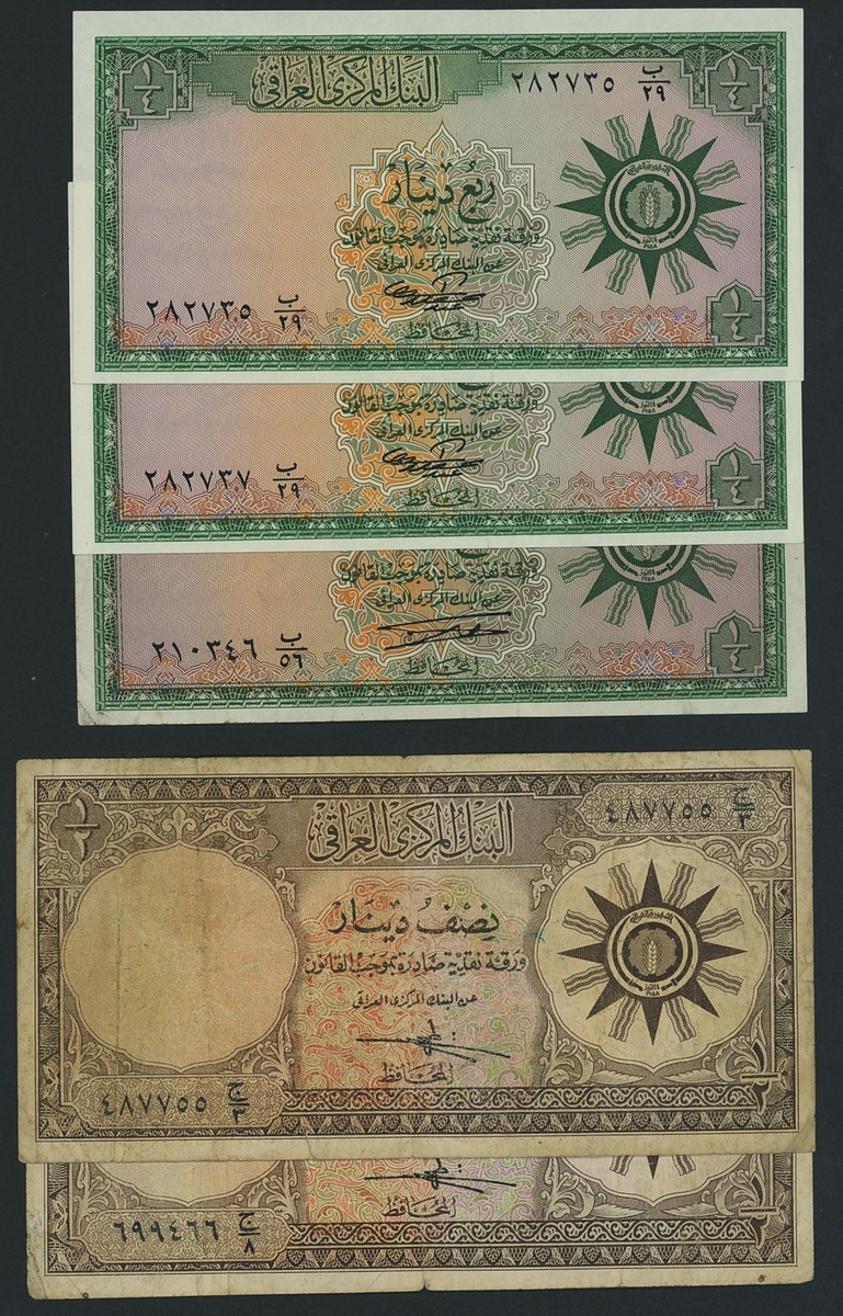 (x) Central Bank of Iraq, [10 notes] 1/4, 1/2, 1 & 5 Dinars, 1959, (Pick 51b, 51c, 52a, 53a, 53b, 54a), ranging from fine to extremely fine