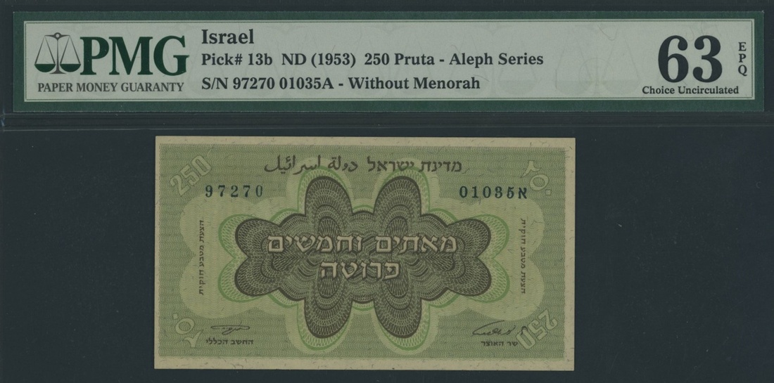 (x) State of Israel, 250 Prutah, MD (1953), serial number 97270 01035A,