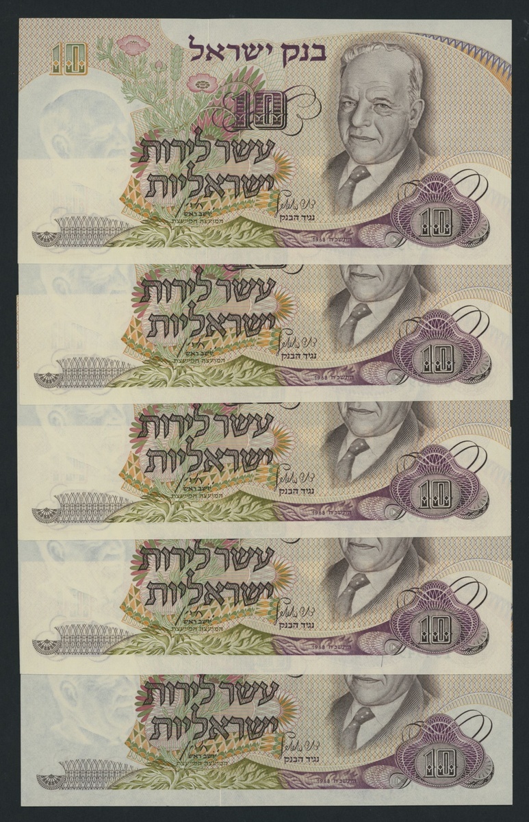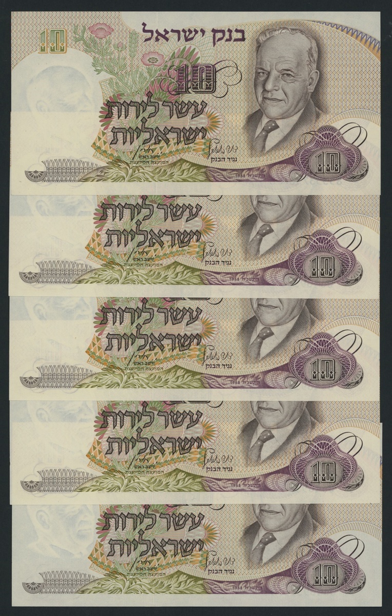 (x) Bank of Israel, [10 notes] 10 Lirot, 1968, black, green and blue serial numbers, including some consecutives,